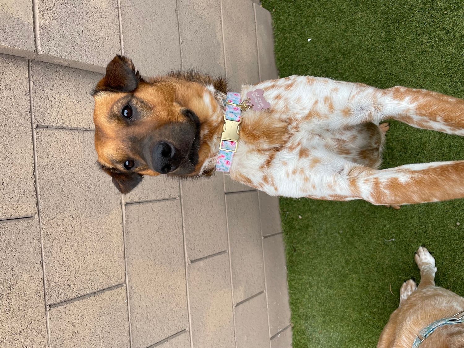 Harper is shy, having been in a hoarding house, and has anxiety around other dogs. She knows basic tricks (sit lay down paw roll over) and goes crazy for treats. She loves to jump up and down when excited.