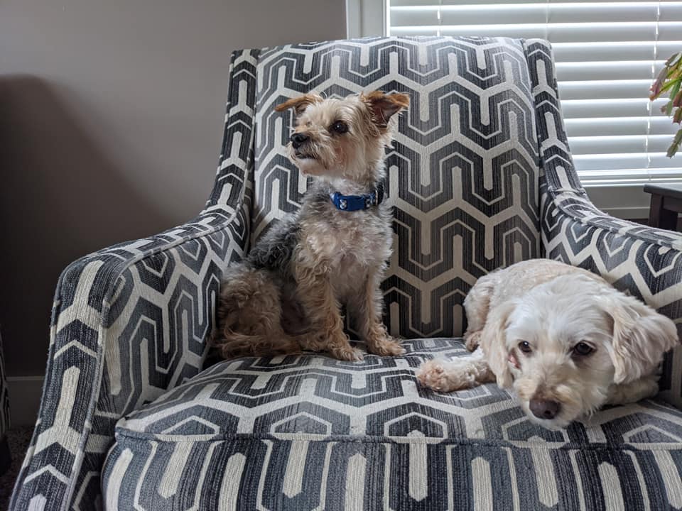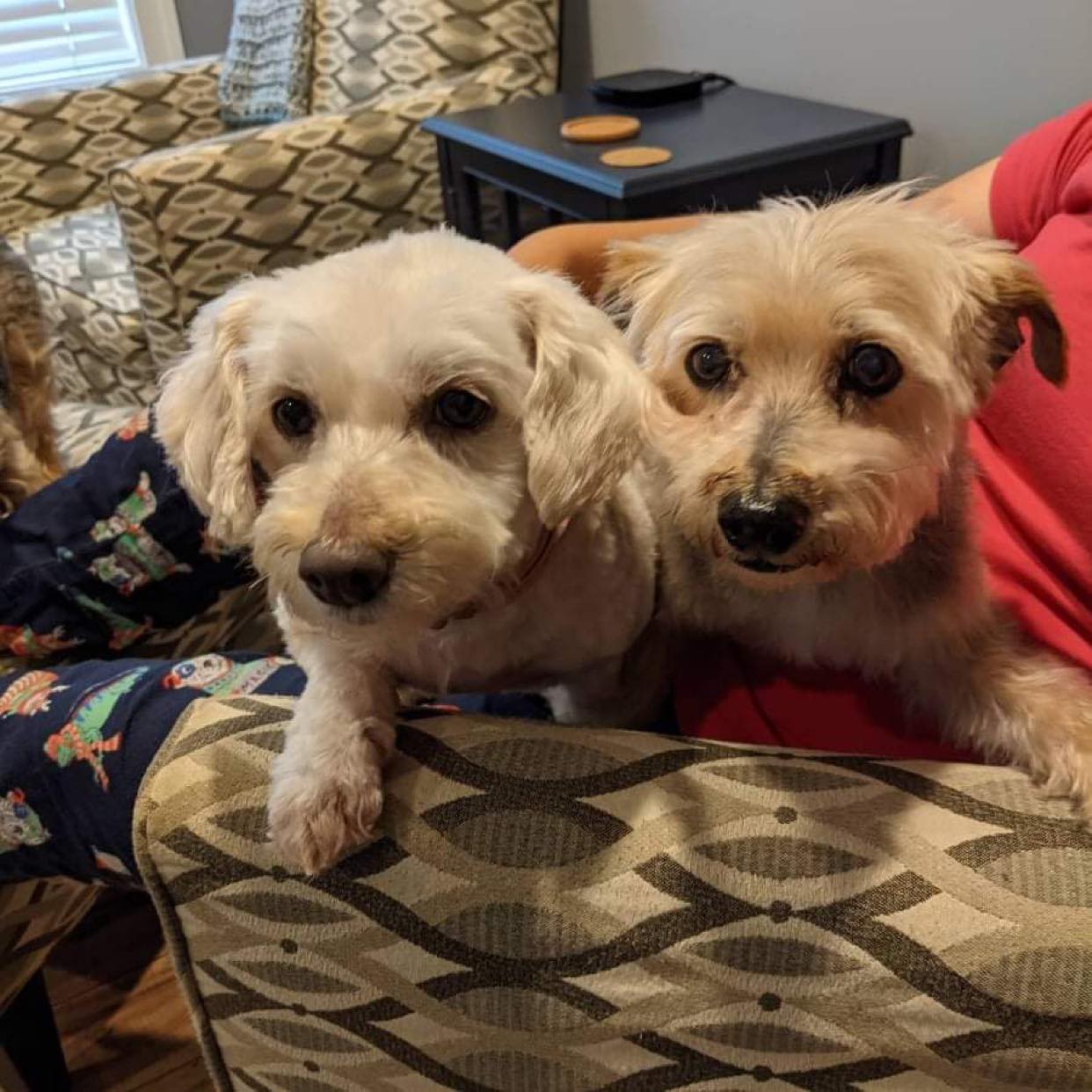 Meet Toby & Chloe, a bonded pair who MUST be adopted together, we will not make any exceptions as they are very much bonded to each other! Toby (Yorkie mix) is likely deaf around 13 years old. Love to snuggle, is incredibly kind, loves small children, and gets along well with other dogs. He loves to find a pillow, pile of blankets, or a warm lap to snuggle on. He only gets vocal when he is playing with other dogs. He is sneaky about letting you know he needs to go out and has had a few minor accidents in the house, but always goes immediately when taken outside. He has never had an accident in his cage. He is truly a kind, gentle old man! Chloe (Bichon mix) is a super friendly lovie dog around 6 years old. She greets you with a hug and wants to be pet/snuggled often. She loves to play with other dogs. She has a big bark when a guest arrives/knocks on the door, but she is the first to greet those guests with a kiss and hug! She loves treats and does a few tricks for those treats. She will growl (low rumble) when Toby tries to share a bed with her, but she loves him and relents quickly. She is quick to roll over for belly rubs and loves to go for walks. She struggles with some allergies and an ear infection, but is on ear medication and a shampoo that seems to really be helping her! An approved adoption application is required. The $250 adoption fee (payable by cash or check only) includes spay/neuter; microchip; dental teeth cleaning (if needed prior to adoption); vaccinations; and heartworm testing. Our adoption application may be found by going to: www.headinhomerescue.org; then click on the link to the adoption application. Dogs for adoption may be seen by appointment only following an approved application. Proof of completion of an obedience class is required for all dogs following adoption. Please note: while we welcome out of state applications, we do not ship our animals and require adopters to come to Holland to finalize any adoption.