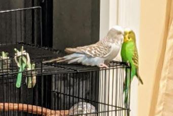 Chunky (Female, English Budgie, Blue and white in color) and Charlie (Male, Green and yellow in color) are two beautiful parakeets. They both are very playful and active. They love when their foster mom opens their enclosure's door so they can play and sit on top of it. They sometimes love to be hand fed especially from their young (human) foster brother's hand. Chunky loves to sit on the swing. They do get along with two other budgies in their foster home. The pair spend their day watching the outside birds, eating and preening. They are in their foster home's family room, so when they are home, they do have company about and someone watching/interacting with them. A linen towel is kept on the top of their cage during the day to give them a “roof”. Once their cage is covered for the night (around 8:30-9 PM), they are quiet till morning (around 6-6:30AM). They are never covered during the day. Chunky & Charlie have been disease tested and will be adopted with her cage, toys, perches and food to get his forever home started. Chunky & Charlie are being fostered in Budd Lake, NJ and will only be adopted to a forever home within easy driving distance. For the Love of Birds is a network of dedicated private foster homes throughout NJ and Eastern PA, we do not have a central location. As our adoptable birds are living in our volunteers' homes, only approved applicants are allowed visit. If interested in meeting Chunky & Charlie please visit our website ftlob.rescuegroups.org to read our adoption policies and to complete an adoption application.