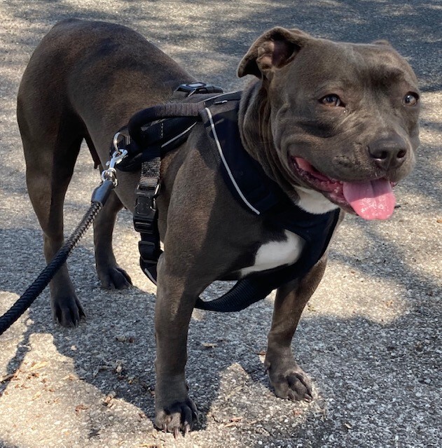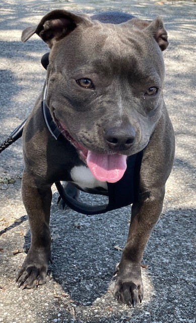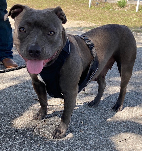 Hi! My name is Maggy. All the volunteers at WAG are in love with me. I am 1 1/2 years old, I love to cuddle, go for walks, give kisses and cuddle some more. I am on the smaller size of most American Bulldogs, I do weigh 46.6 pounds. My coloring is more of a blue with some white markings. Very sweet, quiet and willing to please (I am not shy, so don't think that quiet means shy). I love to go for car rides. I do not get along with cats. I am great with dogs and people. Please call WAG today to make an appointment to meet me. 352-528-9888. See you soon