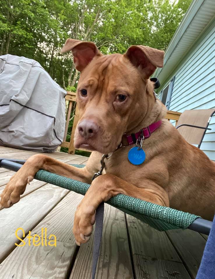 Stella has been patiently waiting for her forever family for over 12 months, 365+ days, which is a long time in dog years. In early 2020 Stella was returned to our rescue when her family could no longer care for her. She has been doing great in her Binghamton, NY area foster home, but she is ready to find her forever home. Her foster mom says: "Stella is super shy and can take a while to warm up to new people. Stella is super smart, and sweet, and loyal to her people once she knows them. She knows all her basics commands, is crate trained, and loves walks and being outside, her favorite thing is to lay on the deck and watch the deer on the lawn as they walk by." Stella doesn't have a lot of dog-to-dog experience so she might be happiest as your one and only. However, Stella has proved to be good with her foster's cats. Stella is an easy-going homebody who would be happy just going for walks, hanging out with her people on the couch. Stella needs her own special person in order to be her best self. Please consider giving this sweet girl a second chance.All of our animals are examined by a veterinarian, given age-appropriate vaccinations, dewormed, microchipped, spayed or neutered, heartworm tested and treated if necessary. Vet references are required and prior to adoption a home inspection will be conducted. Transport options available. Adoption fee applies. If interested go to www.pmarinc.org for an application.
