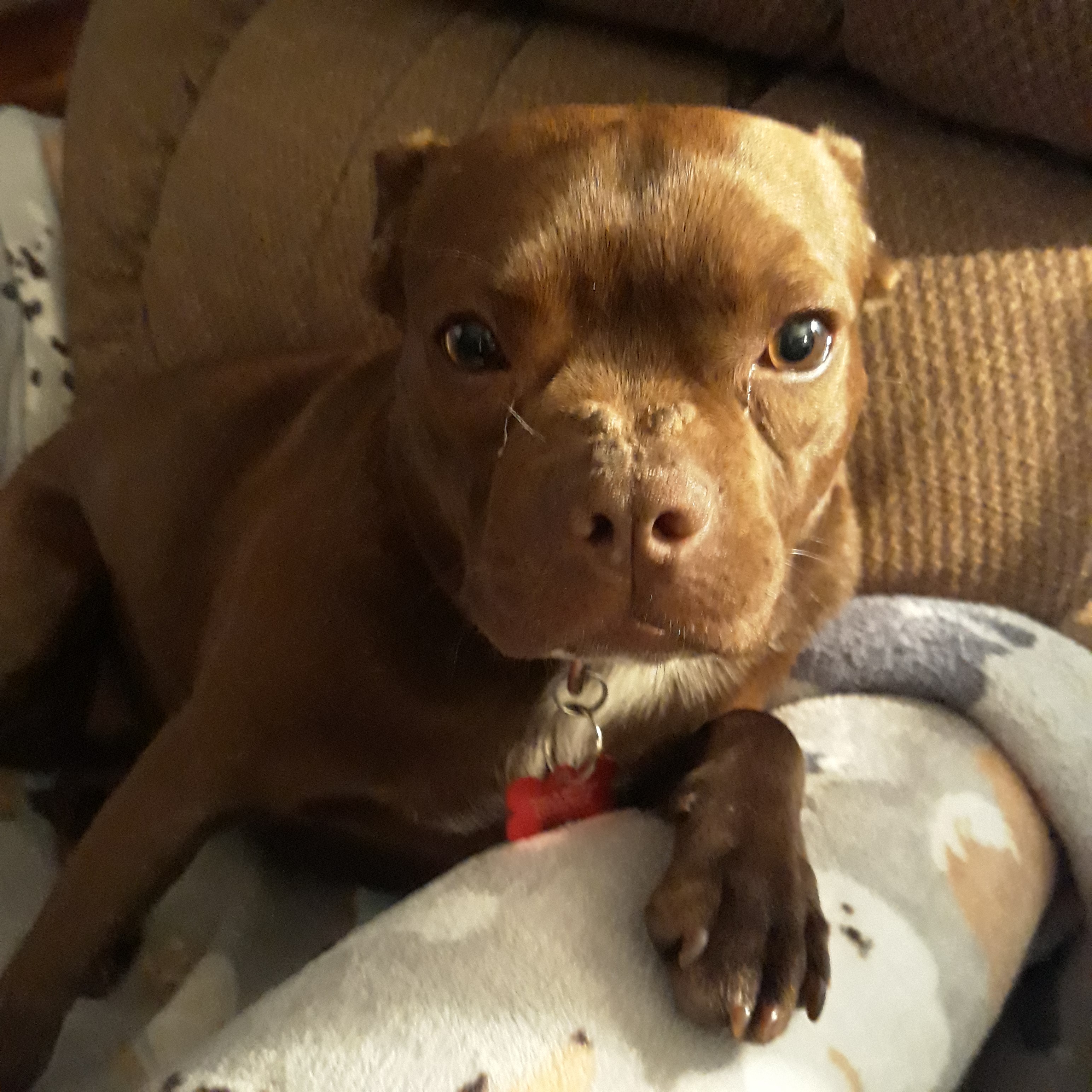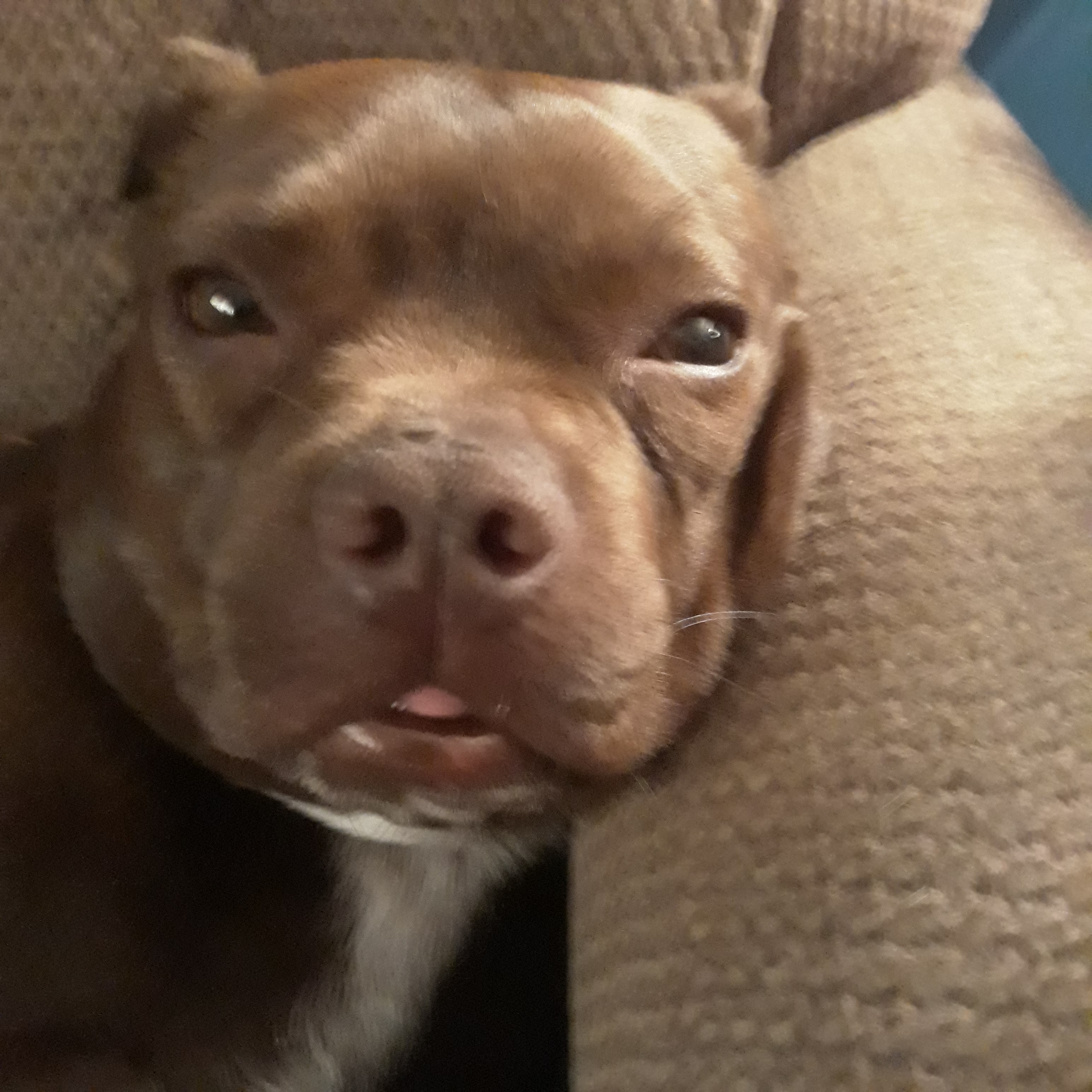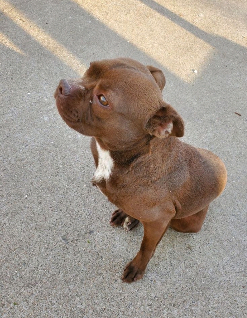 This is Rey, a 2.5-year-old, 35 lb. Boston terrier mix with a chocolate colored short coat and the cutest snorty nose you could call you own. This little ray of sunshine is shy and uncertain when you first meet, but blossoms and shines once she gains confidence. She will need a little time and patience from her owner to come into her true quirky, goofball and playful personality. Rey is a flight risk and life would be easier for the owner if you had a fenced yard, but not required. A harness is used on walks where she finds herself a little uneasy and cautious in her surroundings but also has prey drive for the bunnies and squirrels, so she can pull. Upon initial greeting of humans and dogs’, slow intros are needed to help her gain trust. She doesn’t like super hyper dogs or direct in your face dog meets. Rey also has a playful and rowdy side too and likes to play with dogs her size, as she is fearful of large and boisterous dogs, so it would be best to have her adopted into a family with dogs of similar size or could be the center of attention as the only dog too. Rey has lived with cats and did fine. She seems to prefer female humans but has warmed up to her male foster dad and likes to cuddle with him now as he gives the best belly rubs and holds her like a baby as she likes to lean back into his chest. She loves to snuggle and enjoys car rides, is treat motivated and learning commands and is potty trained. If you want to have to your heart and spot on the couch stolen, then fill out the application to get the ball rolling towards bringing her home. Interested in adopting this lovable animal? Please go to our website www.wagsmn.org and fill out an Adoption Application. Once the application is processed, a Wags representative will contact you, answer any questions you may have, and set up a time/location for a meet and greet! A home visit is required prior to adoption. Thank you for choosing to adopt! Breed and temperament determination: Wags & Whiskers Animal Rescue attempts to determine breed and temperament using a combination of looks, information provided to us at intake, and our experience with the animal while in our Rescue. We do not guarantee this determination.