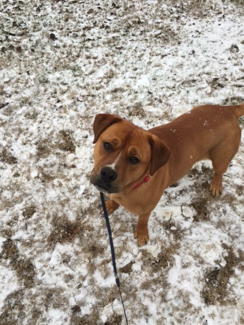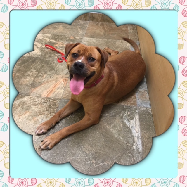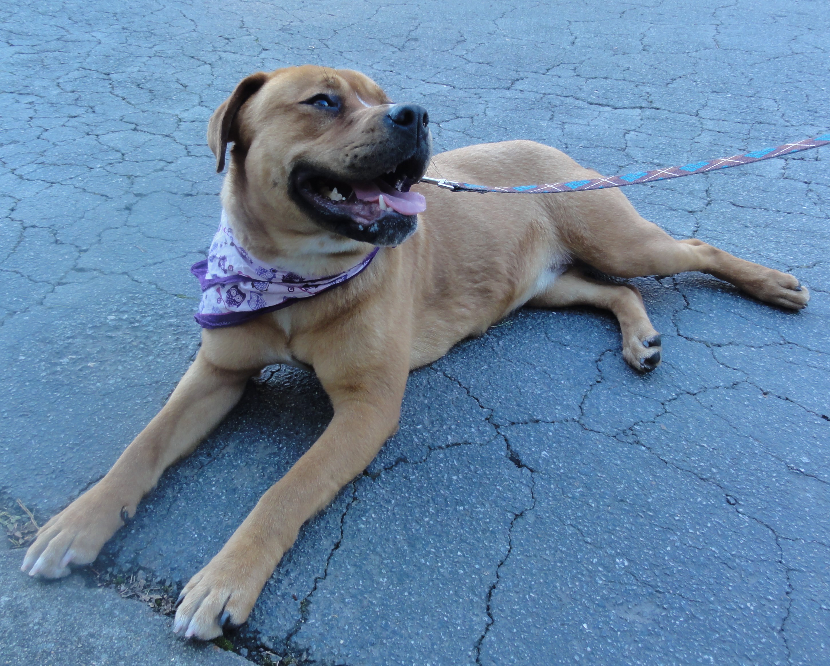 Goldie is an outgoing and very friendly 6 year old Boxer/Bulldog mix, around 45 lbs. She's housebroken, very loving and doesn't meet a stranger - this girl loves people. Her owner had to move and couldn't take Goldie with her. She loves tennis balls and has a lot of personality. She would LOVE to have a fenced yard to run and play in. The ideal fence is a 6 ft wood fence which she has in her foster home. Goldie chases cats, so not cats in the home please. she has never lived with children so any kids should be 12 and older. She is current on shots and also spayed. She’s just waiting for the right home now, is that you?