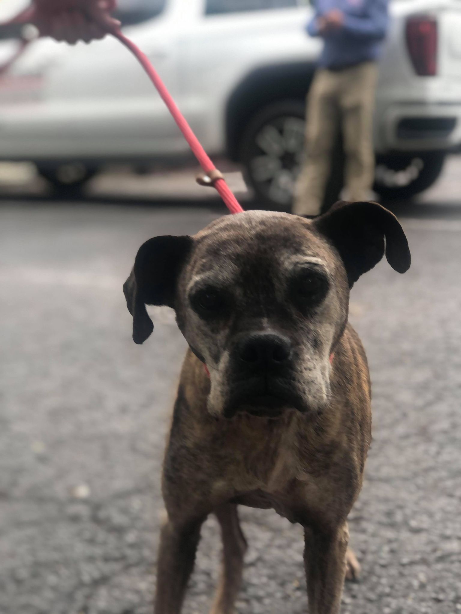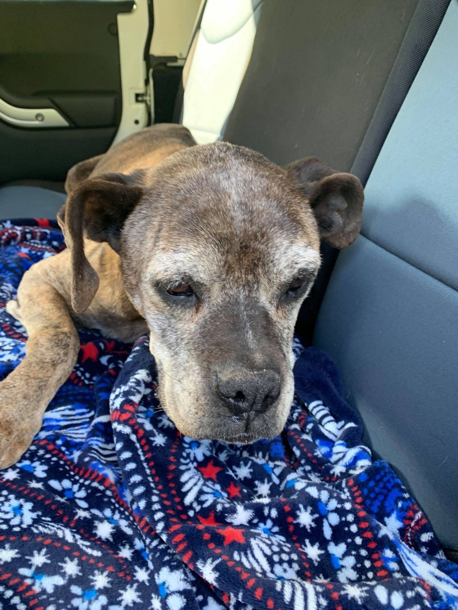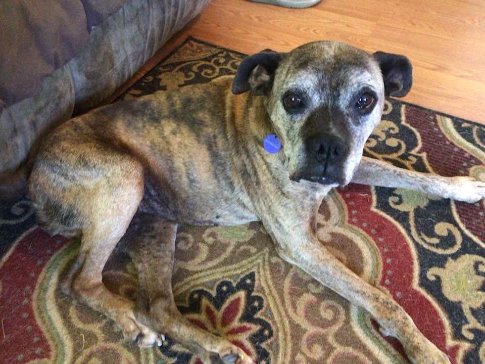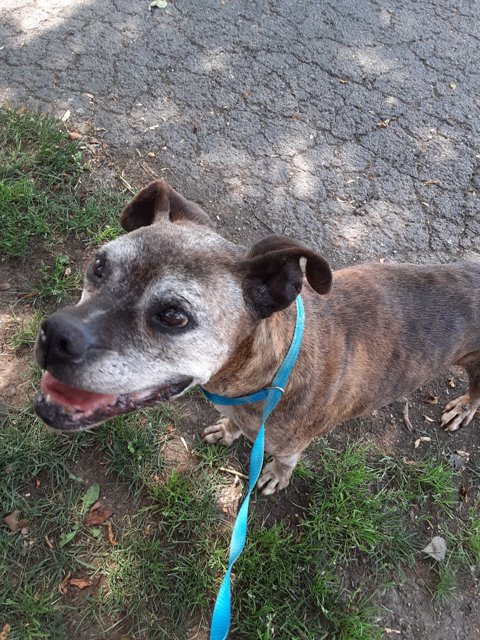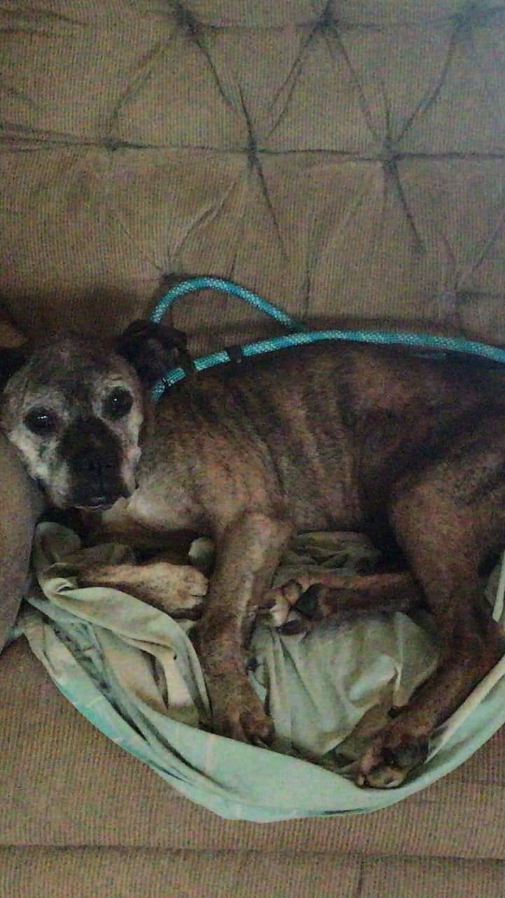 Honey Bea's former owners chained her for most of her life with no food, water or shelter. When they moved away they took the chain off of her but left her to fend for herself. She found herself at the home of a kind lady who fed her and reached out to her friend who in turn reached to a friend who reached out to one of our volunteers, she reached out to us and with a foster home offer, the magic happened. Honey is at Heartland getting all of her vetting. We are running full bloodwork and will be doing x-rays on her leg and pelvis as she has some issues with her rear leg and doesn't seem to have much use of it. It appears to be an older injury though as she seems to have adjusted to it being that way. She also has a few lumps and bumps to get checked out. Honey appears to be mostly to completely deaf. Her ears are in pretty bad shape so hopefully with a good cleaning and treatment she might be able to hear. As soon as she is all vetted she will be going to her Kentucky foster home. 6/16 UPDATE: Honey Bea has made herself right at home with her foster pack. After a few days of all of the new activity she was a little down in her hip/pelvic area so she is being started on a daily regimin of anti-inflammatory medication. She has put on a few pounds and is looking and feeling pretty good!!!!