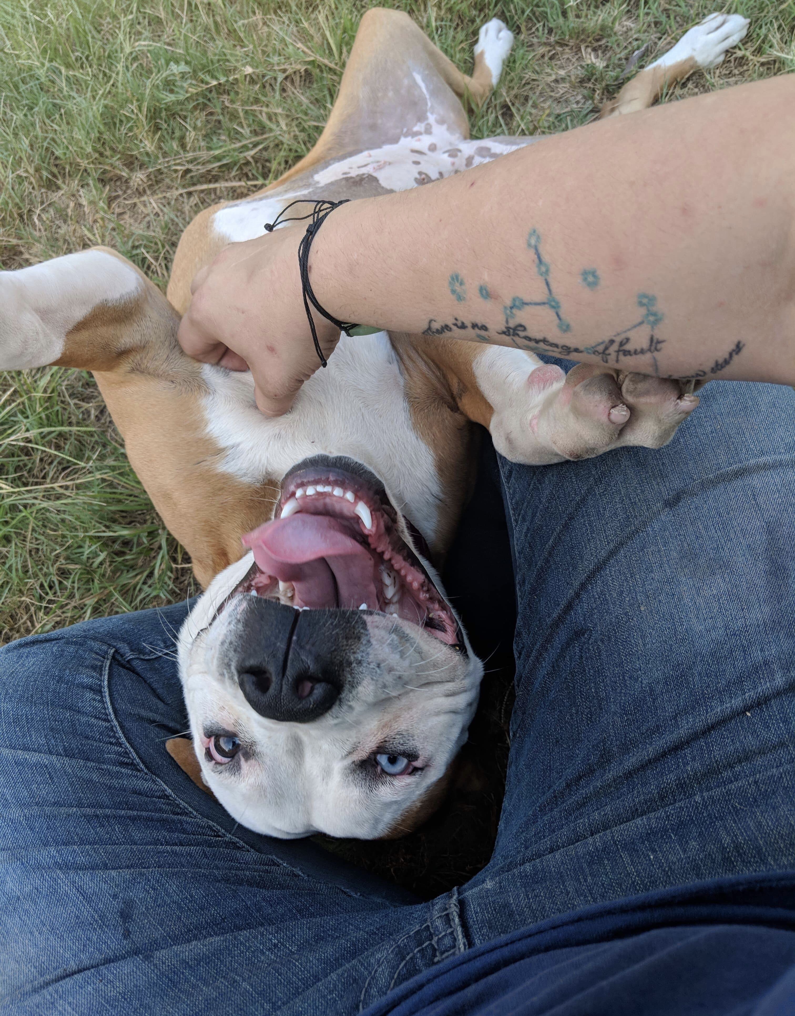 Violet Beauregarde Lonestar was saved from a Texas shelter with minutes to spare! She has a bunch of energy so would benefit from an active owner. Violet is good with dogs but prefers if the other pooch knows some manners! She does great in the car and is an excellent walker, even likes to go running. Although this beautiful girl is sweet and cuddly, she can tend to get over excited at times - so, children should be older/considerate. She needs an owner who will provide her with rules and has some dog experience. Violet was adopted by her foster family but unfortunately, the living situation became too much for Violet to be comfortable in and she was returned to EHR. Violet is a sweet happy girl who would like a quiet home to live in with not a lot of visitors. She may need to be put away when guests come over as she can become a bit protective of her people and home! If you would like to meet this pretty girl, fill out a canine application and don’t forget to mention VIOLET BEAUREGARDE LONESTAR!!