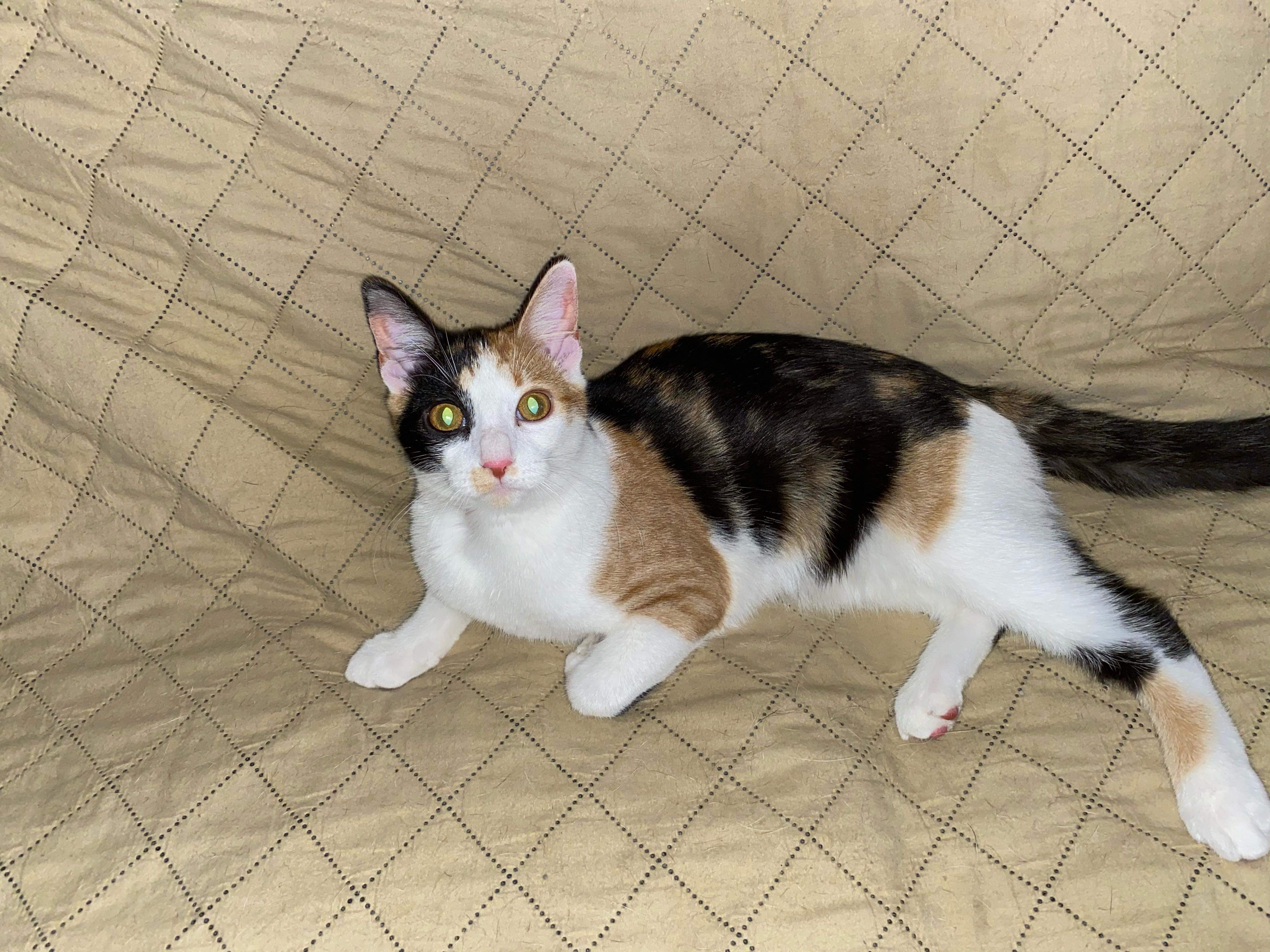 Punkin is a very playful one year old cat. Before she came to the rescue she had a previous encounter with another kitten in which she was badly injured. Because of this she would be best suited in an only animal household. She does tend to be afraid of other animals. She is a very affectionate cat who likes her lap time .Please consider adopting her. She is ready for her new furever home. She is a GREAT lap kitty and just loves to give lovins once she is comfortable with you. See the video. She is spayed and up to date on shots including her rabies. And is microchipped. She is ready for her forever home Adoption fee:$125.00 Apply here: https://tobyscrittercoverescue.org/application/