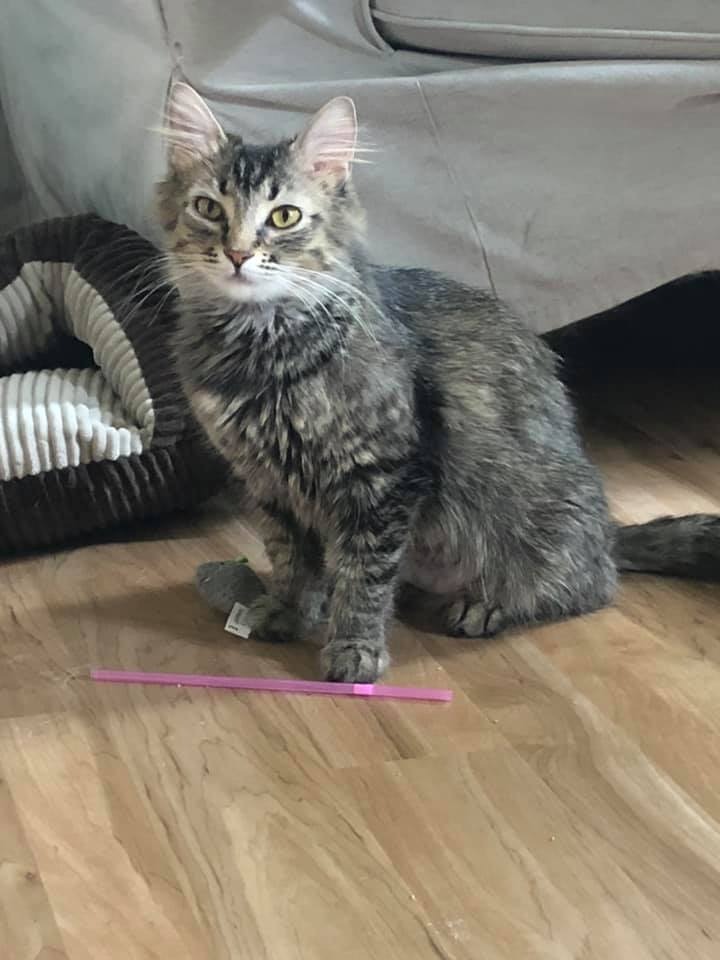 Here Kitty Kitty! Check out Mia! AND THOSE WHISKERS! Mia is a sweet little kitty who is completely litterbox trained and loves nothing more than to people watch through a nice big window! Mia is the mother of our seven dwarves litter and has been a great mama despite being just a kitten herself at around only a year old! Mia will require minimal grooming as she is a medium length coated kitty. Mia is coming out of her shell quite nicely. She has a tendency to act shy around new people, but warms up nicely, seeking out lovin's. She now comes when called, purrs up a storm, gives love nibbles, and follows her foster mom through the house. She loves to jump in the dry bathtub and play in there with a few toys while her foster mom gets ready for work. She also gets along great with both cats and dogs. At first, Mia was a bit annoyed by Lincoln (another cat in the home). Now they are now awesome friends and Lincoln follows her around like a love struck Pepe LePew. They even play with toys together and pounce each other under the chair. So if you are looking to adopt 2 kitties at once... Mia and Lincoln are a match made in heaven. Mia will also do well alone and makes friends nicely with other kitties she meets. Mia comes fully vaccinated, microchipped and spayed. If you think you can be this lil’ mama’s loving family you can apply to adopt Mia at www.pawpatroldayton.com/adopt . Mia’s adoption fee is $75.***We now adopt out kitties by themselves or together. You are always welcome to adopt any single kitten or cat for $75 but will receive a reduced fee when adopting two at the same time. A pair of kittens/cats are $100 because we have found that where one kitty often does well alone, there can also be benefits for felines when being adopted in pairs.*** All of our animals are vaccinated, micro-chipped and spayed/neutered before being adopted.