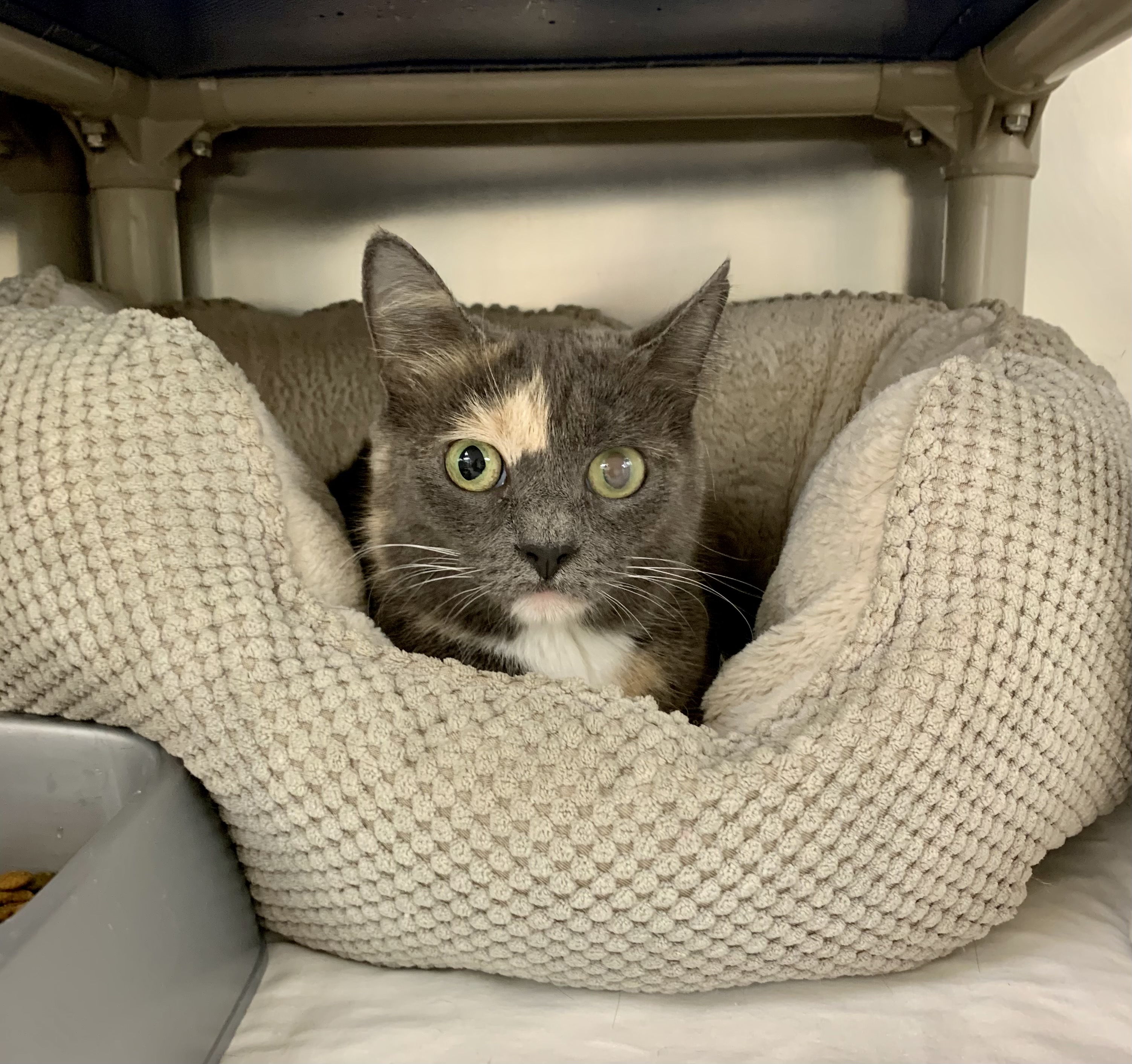 This cat is part of our shelter outreach program where we take pets from overcrowded shelters in hopes of finding them a forever home here! We generally do not have much background info on them. They are all up to date on vaccines, spayed/neutered and microchipped. FIV/Felv negative. 1 yr old. Crimson is a new resident form an overcrowded NJ shelter. She is still decompressing here and getting used to her new surroundings. She needs a patient home. After some time she will come around and can be a very sweet cat. *Per JSAC policy, puppies and kittens under 6 months will not be adopted to families with children under the age of 6 years.