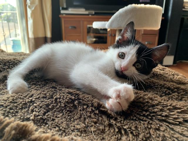 My name is Zora. When I first came to my foster home at 4 weeks old, I was pretty timid. I liked to hide under anything I could find. But my new foster sister, Jiji, really helped me come out of my shell and build up my confidence. We've become pretty close and it comforts me to have her around. Sometimes, if I don't know where she is, I'll call out for her. When it's time to nap, we snuggle and groom each other. That's why I'm hoping to find a new home that will take us both. I can still get spooked by loud noises and new faces so I probably don't want a home that's super noisy. But once I realize everything's okay, I do relax and start poking my nose into everything I find, usually with Jiji leading the way. When we start playing together, we can put on quite a show; much better than anything you'll see on TV. I'm not really big on being held for a long time, but I love keeping my foster mom company. I've even been know to curl up on her head when she's reading in bed. I'm ready to settle into a forever home - preferably with my pal, Jiji. We would be double the love - double the fun! If you are interested please contact my foster Allison at allimackitten@yahoo.com