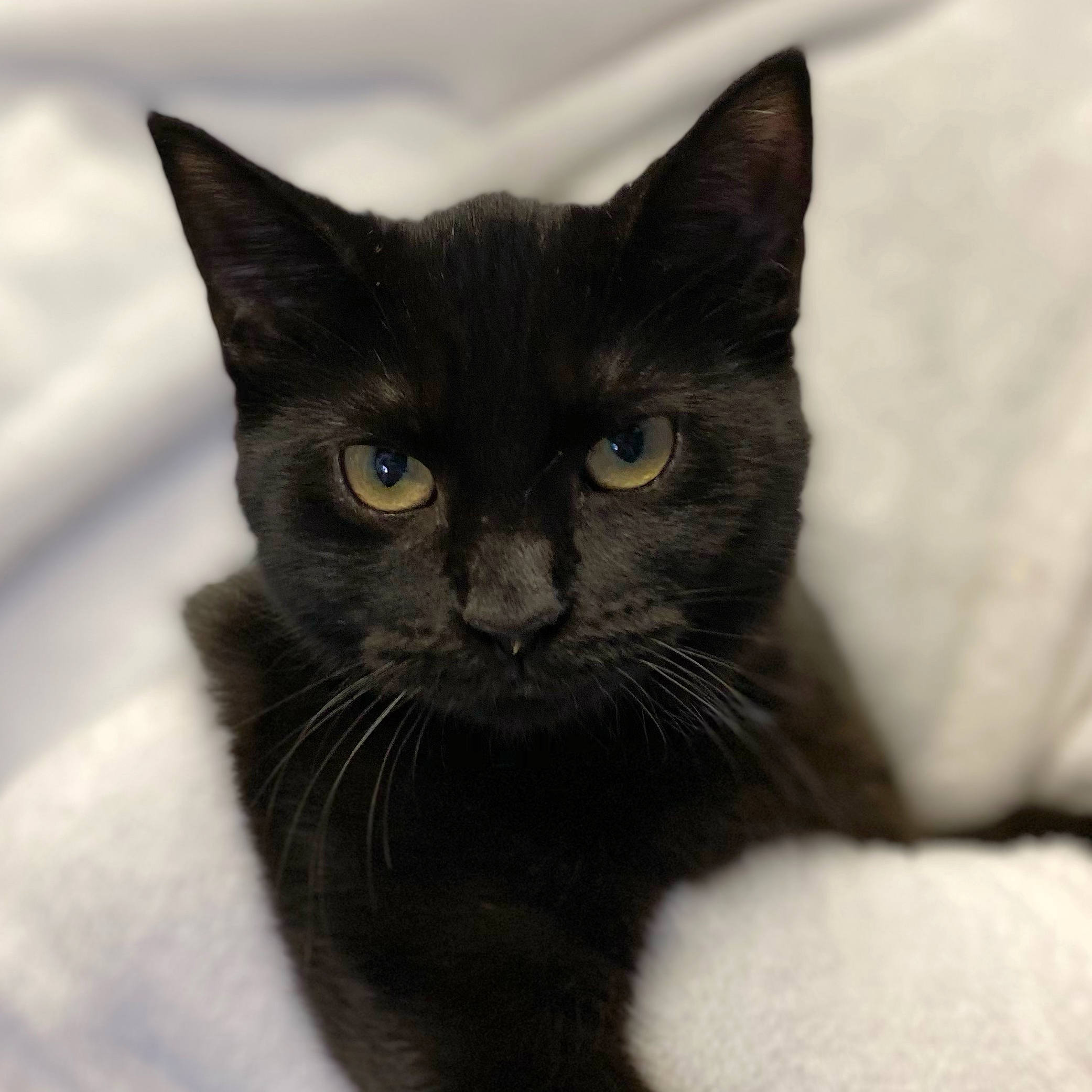 ***The first step in the adoption process is to complete the adoption application at www.emmetcountyanimalshelter.org*** Rainbow is an adorable black cat that came in as a kitten June of 2020 from a home with way more than they could care for. When Rainbow arrived she was shy and not sure of what to do but she has blossomed into a sweet girl that is eager for an ear scratch. Rainbow is still very used to living in a multiple cat environment so a home with other friendly cats would make her most comfortable. Or if you were ready to bring home two, a friend out of her room would be a great idea too! Rainbow is spayed, up to date on vaccinations, micro-chipped and FeLV/FIV negative. Our cat adoption fee is free will to approved applicants. If you would like to add a tiny black house panther to your life consider pretty Rainbow!
