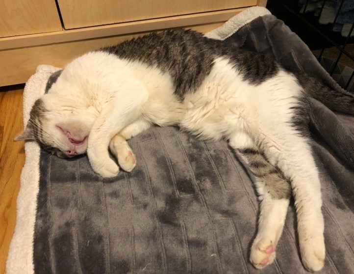Hester was rescued from a hoarding house. Her owner, who at one time had over 50 cats, is elderly and blind and therefore found it difficult to adequately provide the care Hester and the other cats needed. Though the environment wasn't ideal, Hester did get the love she needed to flourish, which shows in her loving personality. Hester is a very special cat. She is one of the sweetest, most affectionate cats, always wanting to be on your lap or at the very least next to you. If you leave, Hester will wait patiently for you to return and then will be right by your side. She absolutely loves attention and wants to be the center of someone’s world. She's a confident kitty who only needed only a few hours to adjust to her new foster home! Hester loves to eat and enjoys cuddling up in a warm spot or in the cat tree. Hester would be fine in a house with other cats. She is 14 years old. Hester is vetted and spayed. Hester is a special situation because she is FIV positive and also has chronic ear issues (which are currently being addressed) and will need to be monitored. Born 5/23/2006