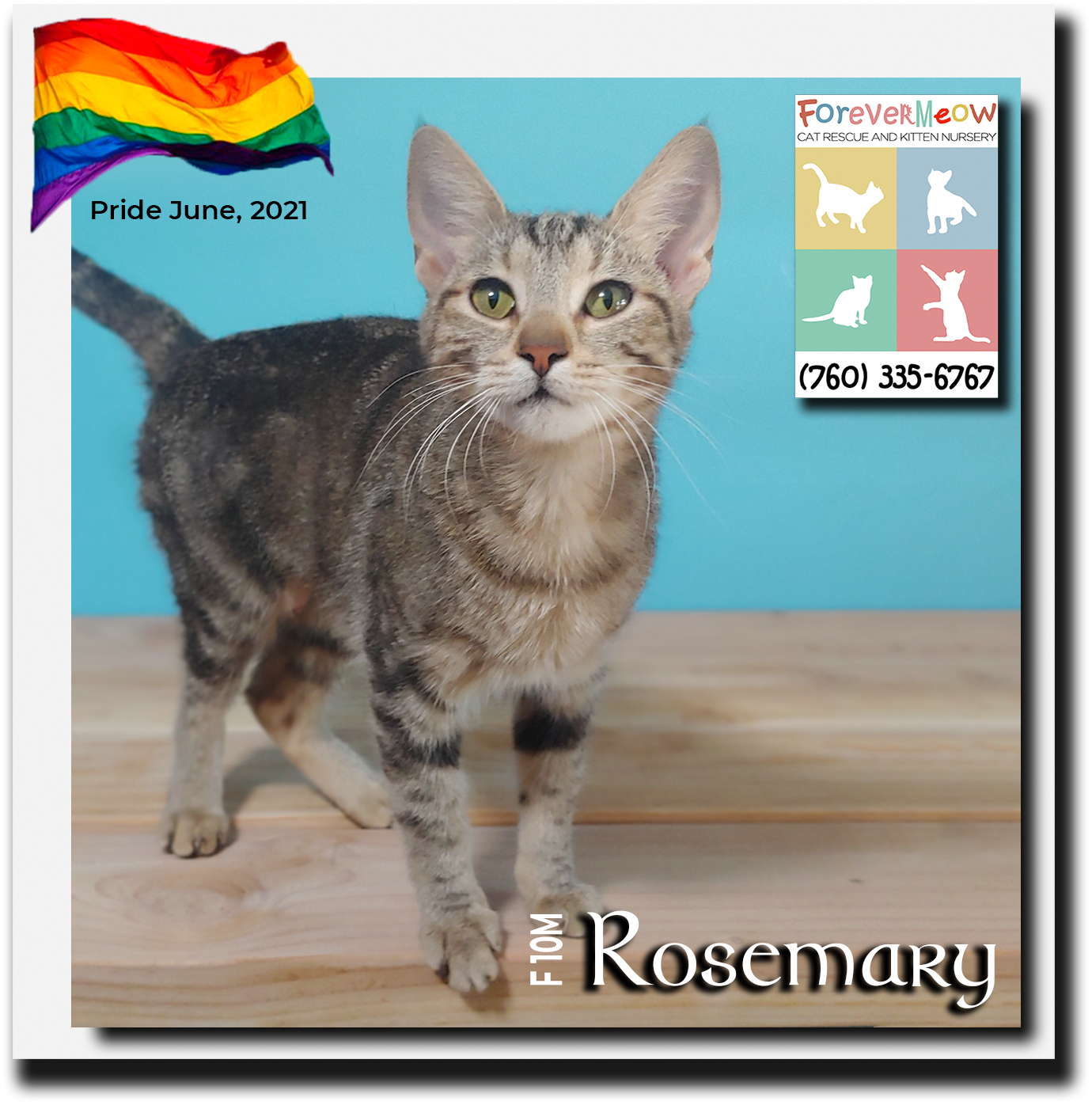 Rosemary is a laid back and very vocal kitty. She loves to chat and will let you know when she needs pets. She loves chin scratches and chasing down cat wands. * * * * * Adoption Application here Adoption fee includes: spay/neuter, FVRCP vaccination (core feline vaccine), rabies vaccination (if old enough), FIV/FeLV test, deworming, microchipping, an initial free veterinary examination at a specified veterinary practice, and lifelong cat behavioral support from a Humane Society of the United States certified cat behavior counselor: - Kittens 1 year $150 - Adult 1 year - 10 years $75 - Senior 10 years+ $0 REQUIREMENTS: Unless specifically indicated, INDOOR pets only and NO declawing - all of our cats and kittens use a variety of scratching posts and other scratching devices. Please note, we often get multiple applications for the same cat or kitten. Unless there are over-riding constraints or requirements, e.g., one of a bonded pair, we always give priority to the order in which we receive a completed application. ForeverMeow is a 501(c)(3) non-profit cat rescue, registered with the California State Attorney General. ForeverMeow is a certified adoption partner of: Riverside County Department of Animal Services, Palm Springs Animal Shelter, Petco Foundation, and PetSmart Charities, and a Best Friends Network Partner. Nearly all of our cats & kittens are rescued from Coachella Valley shelters, or to avoid them from entering the shelter, and since 2013, we have rescued over 1,200 cats and kittens.