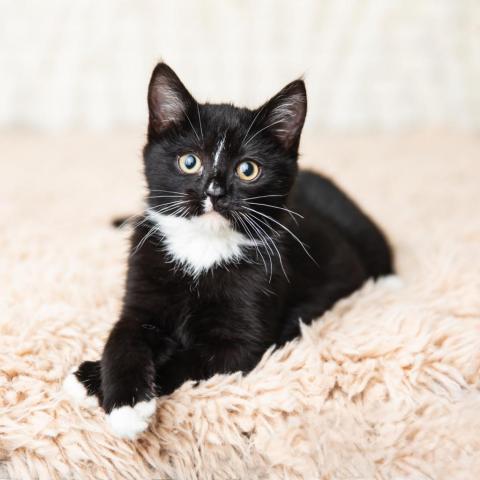 Hi there, I am Cassie! I'm smart as a whip and have something my foster mom calls, "emotional intelligence." I'm a curious little gal and I LOVE being around other people, cats, and even doggos! I'm very energetic and love to run around and play all day but there's nothing I love more than cuddling up with my favorite humans and turning into a little puurrr-machine! I can't help it, you start petting and I start purring...what can I say I'm a simple lady! Anyways, I hope to meet you soon and I can't wait to find my forever home! Kittens need buddies! We require that kittens be adopted in pairs, or go to a home that already has another young companion animal. If you already have a young animal or another kitten in your home, great! If not, Cassie will need to be adopted with one of her siblings (Jules and Rue) or another kitten. The adoption fee for a kitten is $225. If you adopt a pair of kittens from The Bitty Kitty Brigade, the adoption fee is $400. Note: Cassie is available for a foster-to-adopt arrangement. Cassie can move to an approved adoptive home when she is 12+ weeks old but will remain the property of The Bitty Kitty Brigade until medical care has been completed including her spay surgery.