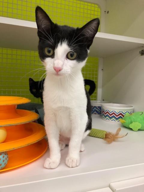 My name is Ellie. I am a lovely female tuxedo. I am five months. I was found living on the  streets all alone. I was sick with a upper respiratory infection and mange. My foster mom has cared for me all this time and I am ready for a home. I am very sweet gentle and a quiet girl. I love to play with my other foster friends and when I am in my quiet mood will sit on your lap for a while soaking up love. If you are interested in me call/text Lorraine at 210-471-8462.email: crazykattlady67@gmail.com My adoption fee is 100.00 which includes neuter rabies shot fvrcp shot feline leukemia and Fiv test and microchip. To download and print an adoption application click on the Adoption tab on www.sanantonioferalcats.org.    All fosters under the San Antonio Feral Cat Coalition: Community Cat Adoption Program are fostered privately through foster homes. They are spayed/neutered, given age appropriate vaccinations, and microchipped before adoptions are finalized. SAFCC is a 501c3 non profit, all volunteer organization serving San Antonio and Bexar County, Texas. Visit sanantonioferalcats.org for more information or email adoptions@sanantonioferalcats.org for information on adopting.