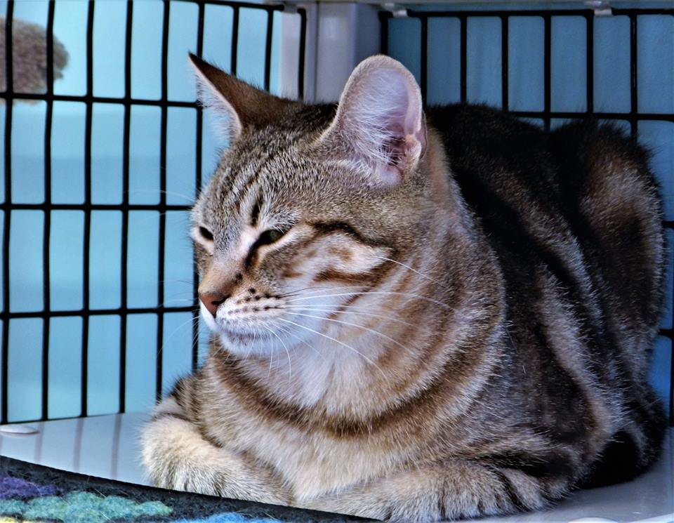 Hi, I’m Val. I was about 4 months old and all alone when I was rescued from the street. I was very, very scared and after coming to SBACC, I went to a foster home so I could get used to people and other cats. I spent about 6 weeks in foster care and then came back to SBACC. I’ve been getting braver all the time, and have adjusted to my room and roommates here at SBACC. While the volunteers are trying to encourage me to relax more around people, I still don’t welcome pets or being picked up. I will need a quiet forever home with another cat or kitten and a family with lots of patience who will give me plenty of time to feel comfortable.