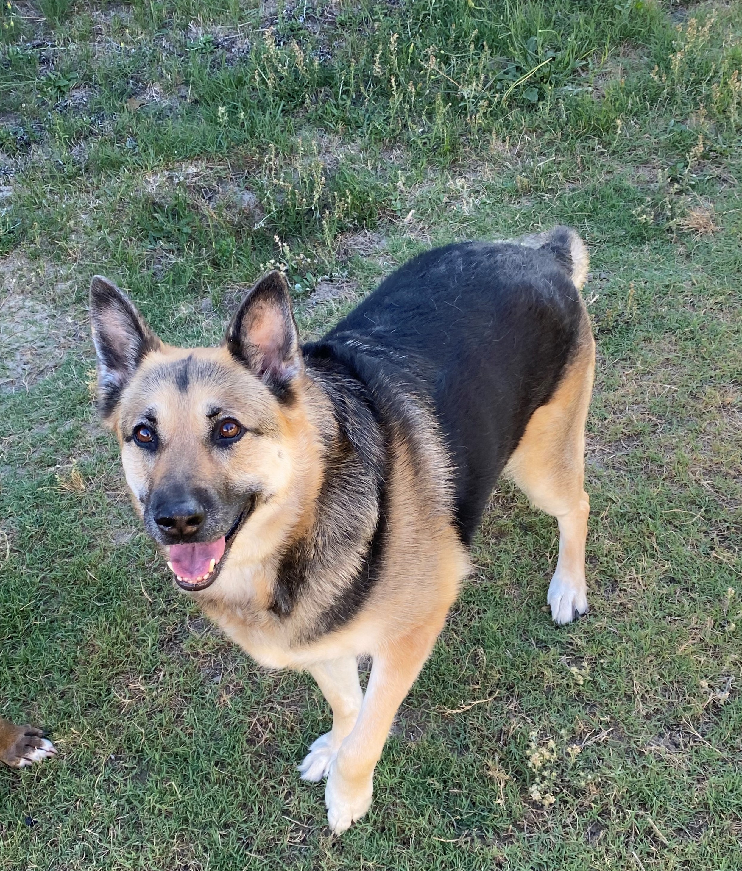 Hi, I am Reese the Second– the color of a Reese’s milk chocolate peanut butter cup! I'm a 78 pound, 7 year old dog, cat and child friendly, good girl. As like other ladies of a certain age, my hips are a little sensitive, so I may do better with older children. I like a short walk once or twice a day and I am accustomed to a leash. I might try to get you to give me extra snacks because a girl's “gotta do what a girl's gotta do” lol. Thanks to this pandemic, I've put on a little weight. I don't let it bother me, though, because there's just more of me to love. I am so excited to see my people, my pets, my toys and treats, of course! I can stay alone while my people are out of the house, but I prefer company. I am housebroken and crate trained. I play well with other dogs and will let them know when I need to rest. My people have had to relocate and are not allowed to have a dog so, I am looking for a new home. I already know that I will love my new people and I am so excited to meet you! If you think you can offer me my furever home, please reach out to your adoption coordinator. If you do not yet have an adoption coordinator, please complete an adoption application at www.freedomgermanshepherdrescue.org. I am being fostered near Fayetteville.