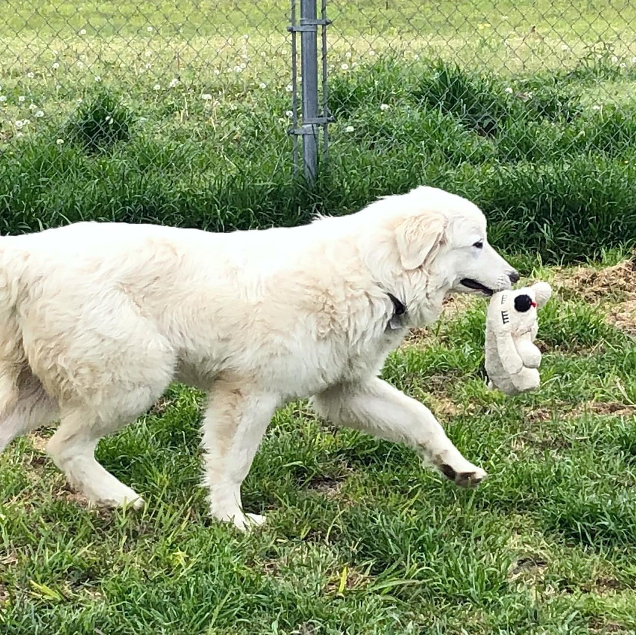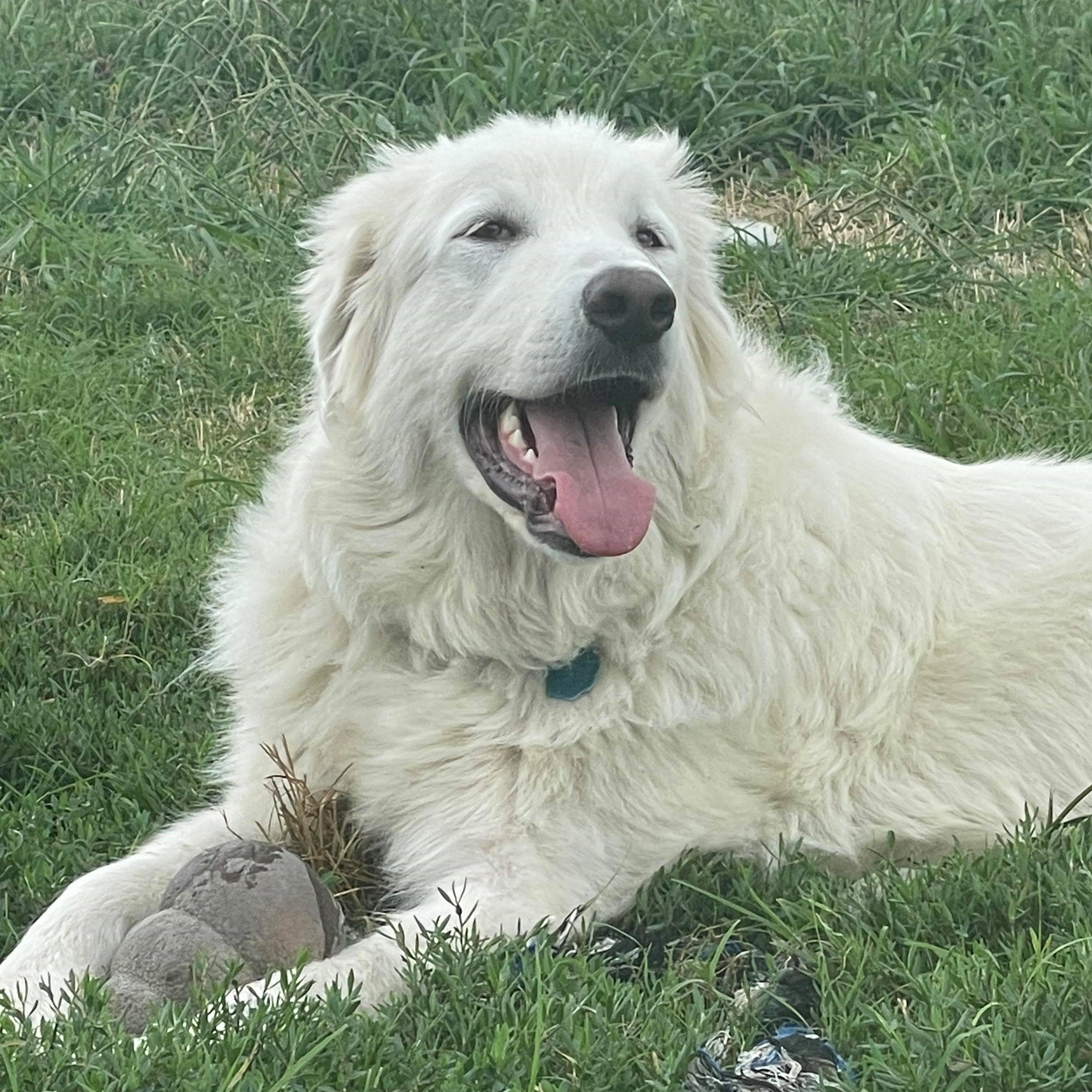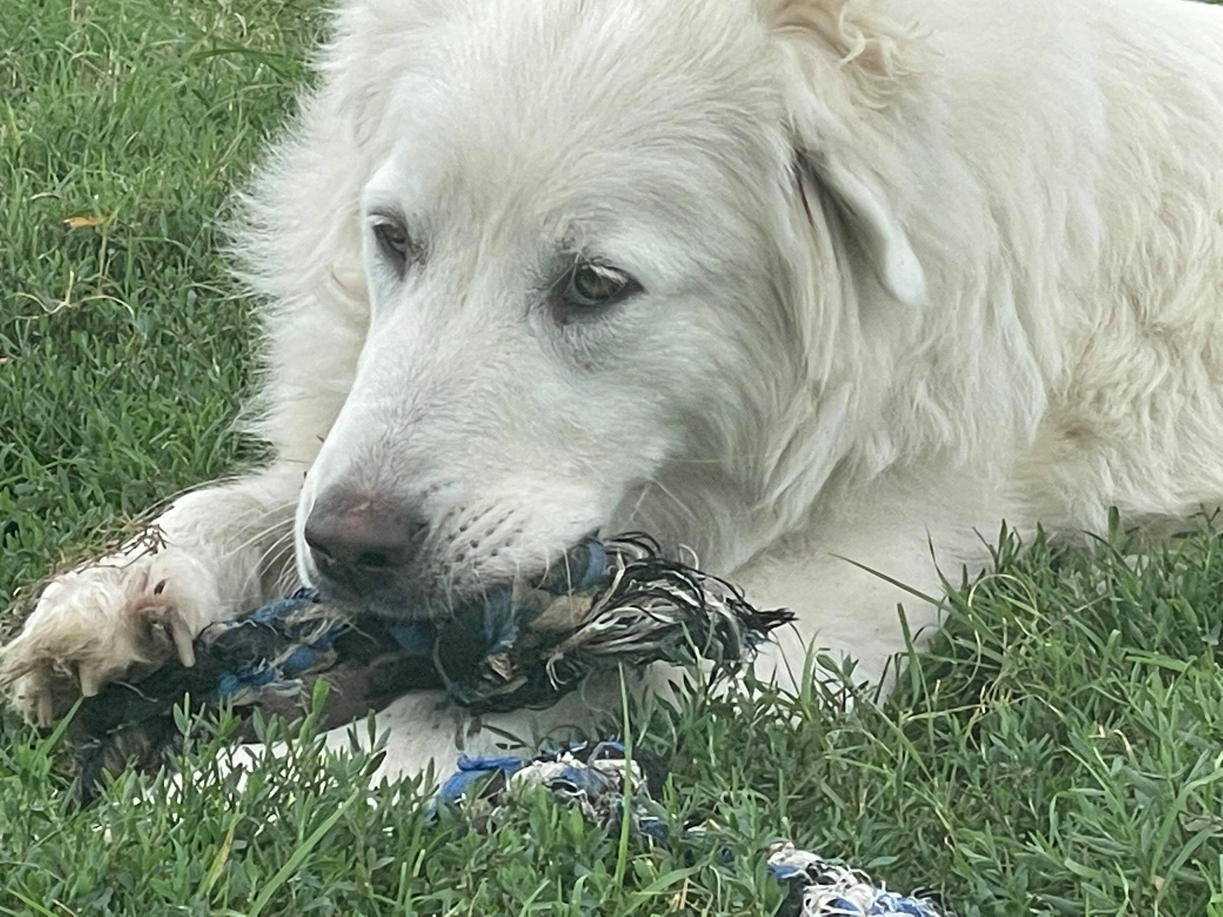 OUR REQUIREMENTS FOR PUPPY ADOPTION: 1) PUPPIES WILL ONLY BE PLACED IN HOMES WITH YOUTHFUL, PLAYFUL, DOGS. This helps integrate the dog into your household easier by giving the pup a mentor. 2) In addition to the youthful playful dog, someone MUST also be home at least part of the day. Please do not apply for a puppy if you are gone 8-10 hours a day. It is not a good situation for you or the puppy. 3) You must have plans in place to socialize your puppy properly. 4) Our puppies are not livestock dogs. They must be family pets that are allowed inside the home. Please watch this short video which demonstrates how puppies learn polite behavior from their adult dog mentors. https://youtu.be/R6N8STRl2aI Meet Jadzia! She is a puddle puppy! She loves to jump around in puddles after it rains, and look how beautifully she cleans up! She's gorgeous! Named after Jadzia Dax from Star Trek Deep Space 9, our pup was already a whopping 75 pounds at 7-8 months old! Born around October 2020, her adult weight will likely be around 100 pounds. She's a big girl! Jadzia is a little shy and reserved when meeting new people, and is working on building her confidence. After she knows you, she is very loving and submissive. She has had limited exposure to children during foster care, but we have seen her be great with kids. Found as a stray, she was lured into rescue with cookies and the presence of a toddler. Jadzia loves playing with her furry foster siblings, and gets along with dogs of all sizes. She is very friendly and excited with them. She is submissive and will lick them in the mouth, sometimes too much. She can be a little too curious and nosy with small dogs. She must have a large, playful doggy companion in her forever home. If you don’t already have one of those, adopt a buddy for her from us! She is nice to cats and gets a little nervous of the more outgoing ones. Jadzia has a silly side. When playing with other dogs, she likes to get the zoomies, running around the yard at lightning speed! She loves toys and can never have enough of them! She is happy to run around with them in her mouth or share them with her friends. Baby Jadzia is house trained, crate trained, and leash trained. She isn’t much of a barker. She rides quietly in a car. Sweet Jadzia is going to be a great addition to someone's family. SPIN Pyrs are all in foster homes in the Dallas/Fort Worth area. Potential adopters are asked to make travel arrangements if they live elsewhere. All SPIN dogs are spayed or neutered, current on vaccinations and on heartworm prevention. Please go to our website www.SpinRescue.org and fill out an application for this great Great Pyrenees!