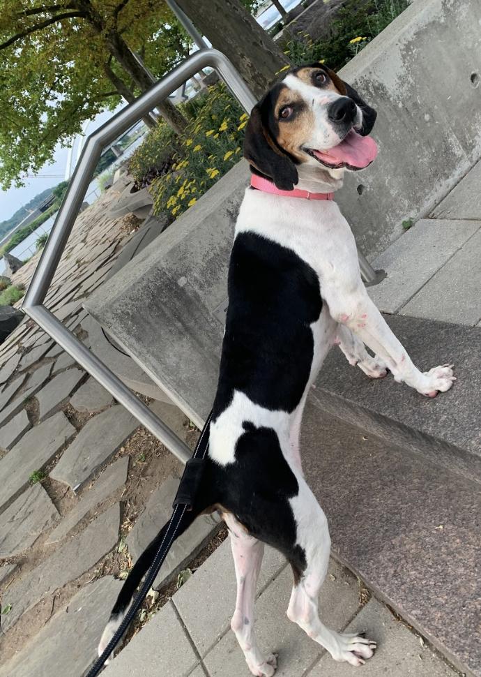 Female, ~3 years old, ~54 lbs. Approximate Age: ~3 years old Approximate Weight/Size: Large Good with: Dogs, Kids Not tested with: Kids, Cats Hi, I'm Tessie! I'm a loving pup who has had a rough start to life. I'm looking forward to getting the TLC I deserve. I'm the most playful pup who gets very excited all the time! I think my Foster Family said it best: " Tessie weighs in at 55 pounds with a 19 inch earspan. With Tessie, everything is a game. Eating breakfast? Looks like a game of keep away. Trying to do yoga? Looks like a wrestling pose. Relaxing on the couch? Looks like you're playing hard to get. Tessie is looking for a family to love her (and play with her) as much as she will love them." Even though I've been through so much, I still have so much love for everyone I meet. I am learning so much with consistent training and I'm looking forward to continuing that with my forever family. I hardly ever bark and I'm so sweet and sensitive. I love people and children, but need to be the only dog in a home. I can't wait to find my forever home where I can share all the love I've got to give! Adoption Application: http://bit.ly/adoptrdr Adoption Application: http://bit.ly/adoptrdr Foster Application: http://bit.ly/fosterapprdr Adoption Process: In order to adopt, we require an adoption application. After you submit an application, if you pass the screening, we will contact you to schedule a phone interview. We will call your references, including your veterinarian and landlord (when appropriate). We will also conduct a home visit. After these steps are complete, you will be approved to adopt a dog. Please note this process takes 1-2 weeks so applications submitted when you are ready to bring a dog home within that time frame. You can meet our adoptable dogs at events, however, we cannot guarantee that dogs at events do not have pre-approved applicants meeting them there as well, so the application is the best way to start the process. Mission Statement: Forever true to “The Underdog”, Rural Dog Rescue is dedicated to saving the lives of dogs in shelters who are often overlooked for adoption or rescue. We save the dogs who are at most risk of being euthanized: the hounds, the black dogs, the seniors, the sick and the broken. We make a commitment to reserve a minimum of 50% of the dogs we save to The Underdog. Root For The Underdog! Rural Dog Rescue's home base is in Washington, DC. We adopt to the Washington, DC metropolitan area to include Maryland and Northern Virginia. We support several high kill shelters that euthanize in 72 hours and whose kill rate is 70% or higher in rural areas of Virginia, West Virginia, North and South Carolina. Rural Dog Rescue also helps dogs in need in Washington, DC and Maryland. We are 100% volunteer and foster based and no salaries are paid. 100% of your donation and adoption fee goes to helping the dogs and cats of Rural Dog Rescue. Although we try to be as accurate as possible, Rural Dog Rescue cannot guarantee the breed or full-grown adult size of any of the dogs or puppies in its care. Because many of these dogs were found as strays or are the result of irresponsible, unplanned breeding, we do not know the dog's exact background and can only list breed and size by our best educated guess. If exact breed and size are important to you, please consider adopting a dog from a specific breed rescue. Our goal is for our dogs to be adopted by people who will love and care for them forever for who they are - no matter what breed and size they turn out to be! All dogs go to their new homes spayed or neutered, up to date on all shots, dewormed (although a second deworming may be required), started on heartworm and flea and tick preventative and sometimes microchipped.