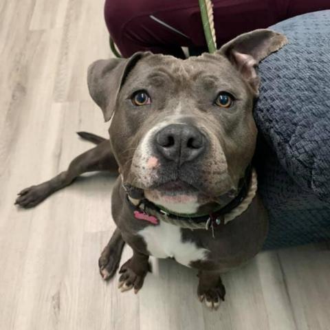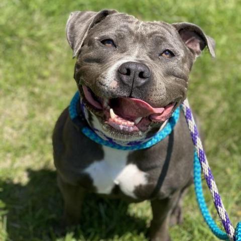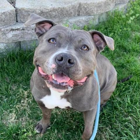 She snorts, she slobbers, she runs with abandon (as fast as her stumpy legs can carry her), she leaps into your lap, she zoomies but has trouble hugging the turns, and she gives the BEST kisses. Who's that girl? Isla!! 3.9 y/o, 73 pounds, L A D Y T A N K Dogs: best as an only-dog dog Cats: unknown Kids: friendly Crate- and potty-trained