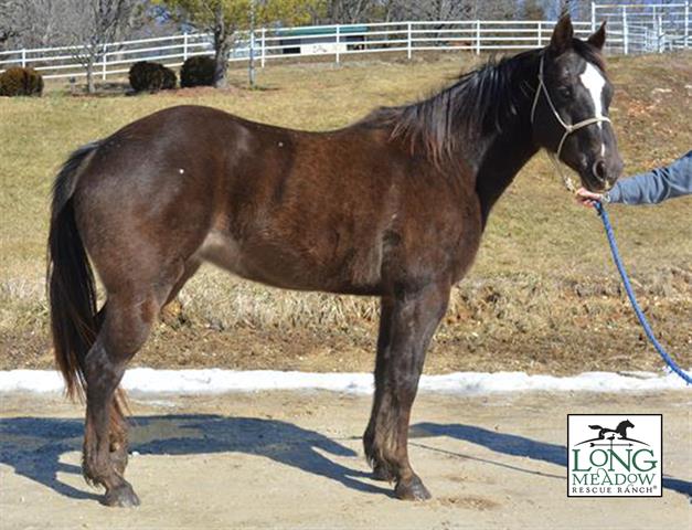 Meet Daphne! This solid built mare came to Longmeadow alongside a large group of other horses. Being the youngest within her group, it's clear that she has not had as much time being handled. While she does accept a saddle and rider, she does not understand the bit or bridle. She will halt and back up nicely. She is still learning how to steer and move forward. At this time she will require at least a 60 to 90 day refresher with a professional trainer before being ready for an advanced rider. She will make a terrific athlete for an adopter looking for their next riding companion!Adoption Fee: $500.00Carrying Weight: 230lbs (including tack and rider)HEIGHT: 14.3 hands