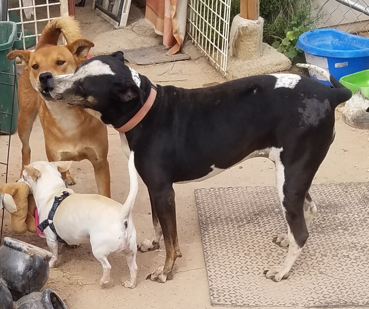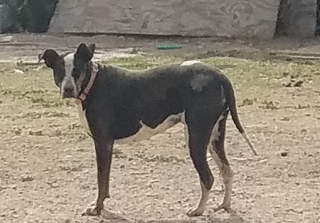 Shar pei - dalmation mix femaleMissy Moo is a beautiful girl, she has had some leash training. She is cautious when meeting new people. She gets along with all the dogs and has been introduced to cats. She would be fine with a family of kids and mixed animals. www.livingwaterranchrescue.com