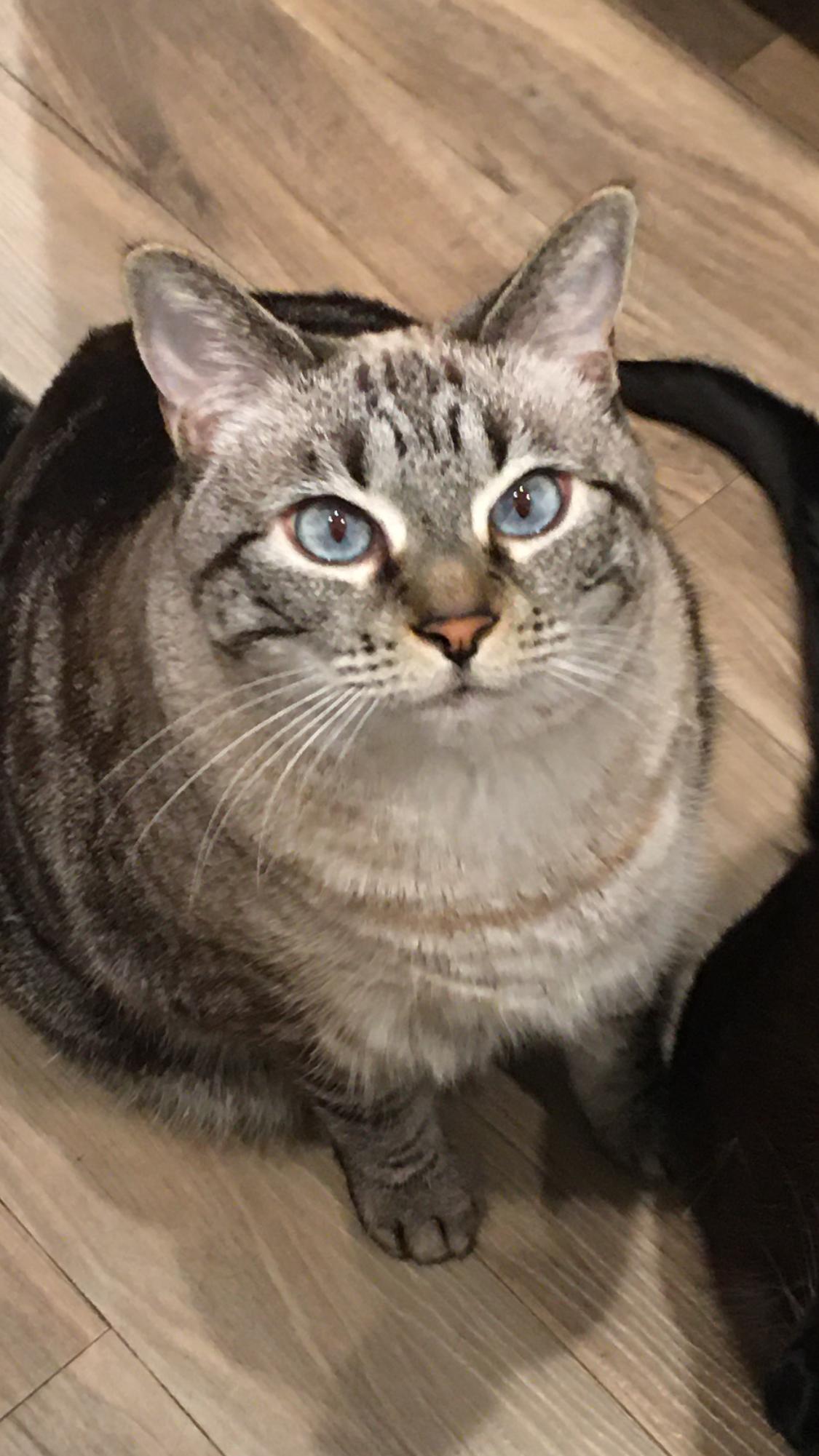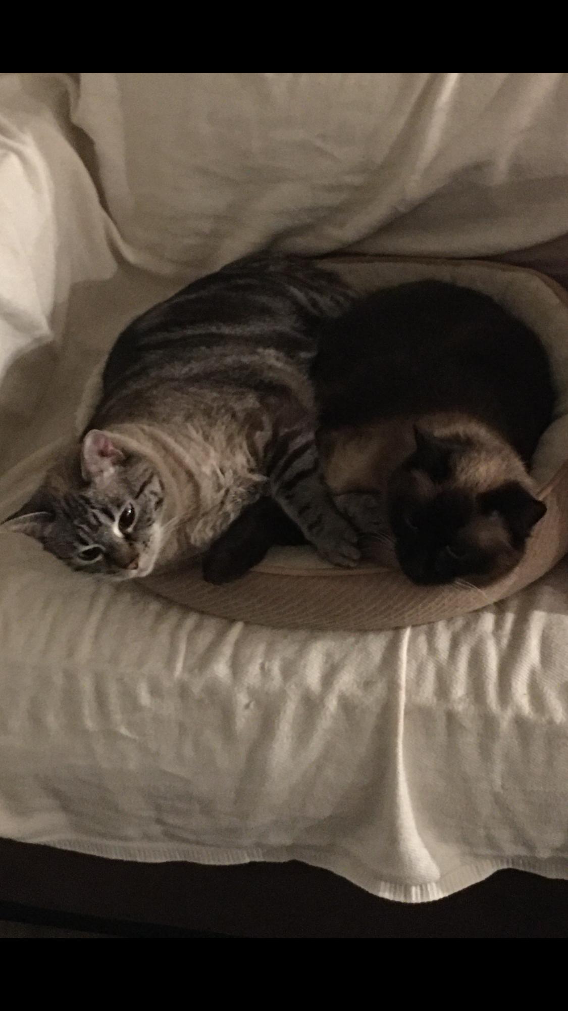 These beautiful cats are Lulu (Chocolate point Siamese) and Posey. Looking for a new home together; they are sisters and love each other! Both cats are sweet, affectionate, indoor only, and full of personality. Lulu is pretty chill. Posey is very smart and observes everything around her. They like catnip, feather wand toys, and will “sit” for treats. Kitties are a little overweight so on a diet. They are litter box trained, and on a diet to watch their weight. They might be OK in a home with a calm dog. It's unclear if they'd welcome another cat sibling. They hope to find a new loving home together! Lulu and Posey are being cared for by a member of the community. To arrange to meet these cats or find out more, email us at courtesy@thedancingcat.org.