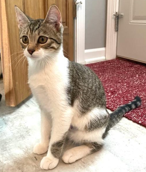Lila is an adorable and sweet 5-month-old female tabby and white kitten. She has big beautiful green eyes and a pretty tabby mask. Lila's mother came to us as a stray last December, very pregnant, cold and hungry. She since gave birth to 5 beautiful and healthy kittens. She and 2 of Lila's littermates have already been adopted. Lila is very affectionate and friendly. She loves to play and has lots of kitten energy. She is very entertaining. We will only adopt her as an indoor family pet. She was born indoors and we want her to go to a family who will keep her safe inside for her lifetime. It would be ideal if Lila was adopted with another kitten, as these kittens have never been separated. Lila has been spayed, tested negative for fe-leuk/FIV, has been dewormed and is up to date on her age-appropriate kitten shots. For more information on Lila or to adopt her, please contact foster mom Jackie (call or text) at 320-761-0256. Lila's adoption fee is $75 plus tax ($80.16), but if she is adopted with another kitten the fee is $50 each plus tax ($106.88).