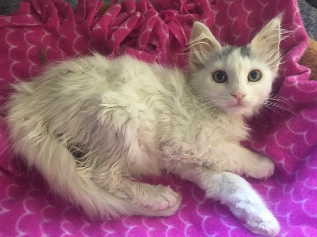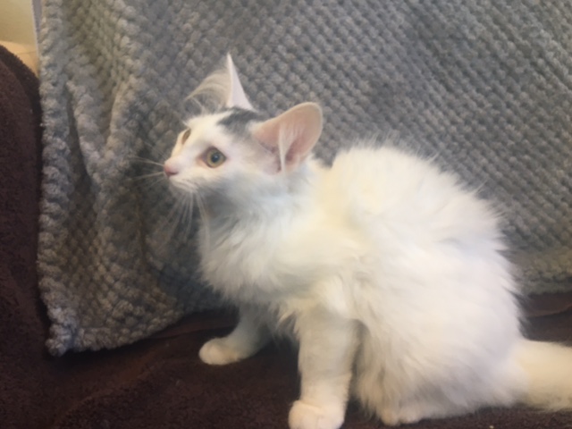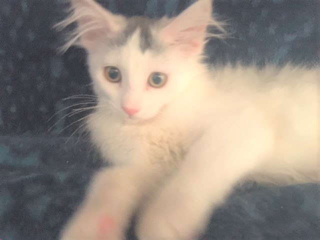 STEP 1 - FILL OUT AN APPLICATION - https://form.jotform.com/73477285783169 STEP 2 - IF YOU HAVE QUESTIONS, EMAIL jcirwin@pacbell.net Gemma and her sisters - Bling and Tiffany were found in a greasy, dirty junkyard. They were so filthy you could not tell that they had the softest whitest fur. Gemma has a small patch of grey on her head and she had the longest ear furnishings you have ever seen (those tufts of hair coming out of the ears) These babies fur is so soft and fluffy. Mama was all white but completely feral. Thankfully her babies were rescued in time and are very sweet. If you are interested in adopting Gemma, the quickest way to get a reply is to e-mail jcirwin@pacbell.net or fill out an application at https://form.jotform.com/73477285783169 . You may call (818)707-6186 and leave a message but we are not there to answer the phone so email is quicker. Our adoption fee is $125.00 per cat which covers the cost of spaying or neutering, testing for feline aids and leukemia, first vaccination, de-worming, Advantage flea treatment, and the care of the animal prior to adoption. DUE TO COVID, CATS ARE AVAILABLE TO BE SEEN BY APPOINTMENT ONLY AFTER RECEIPT OF AN APPROVED APPLICATION!