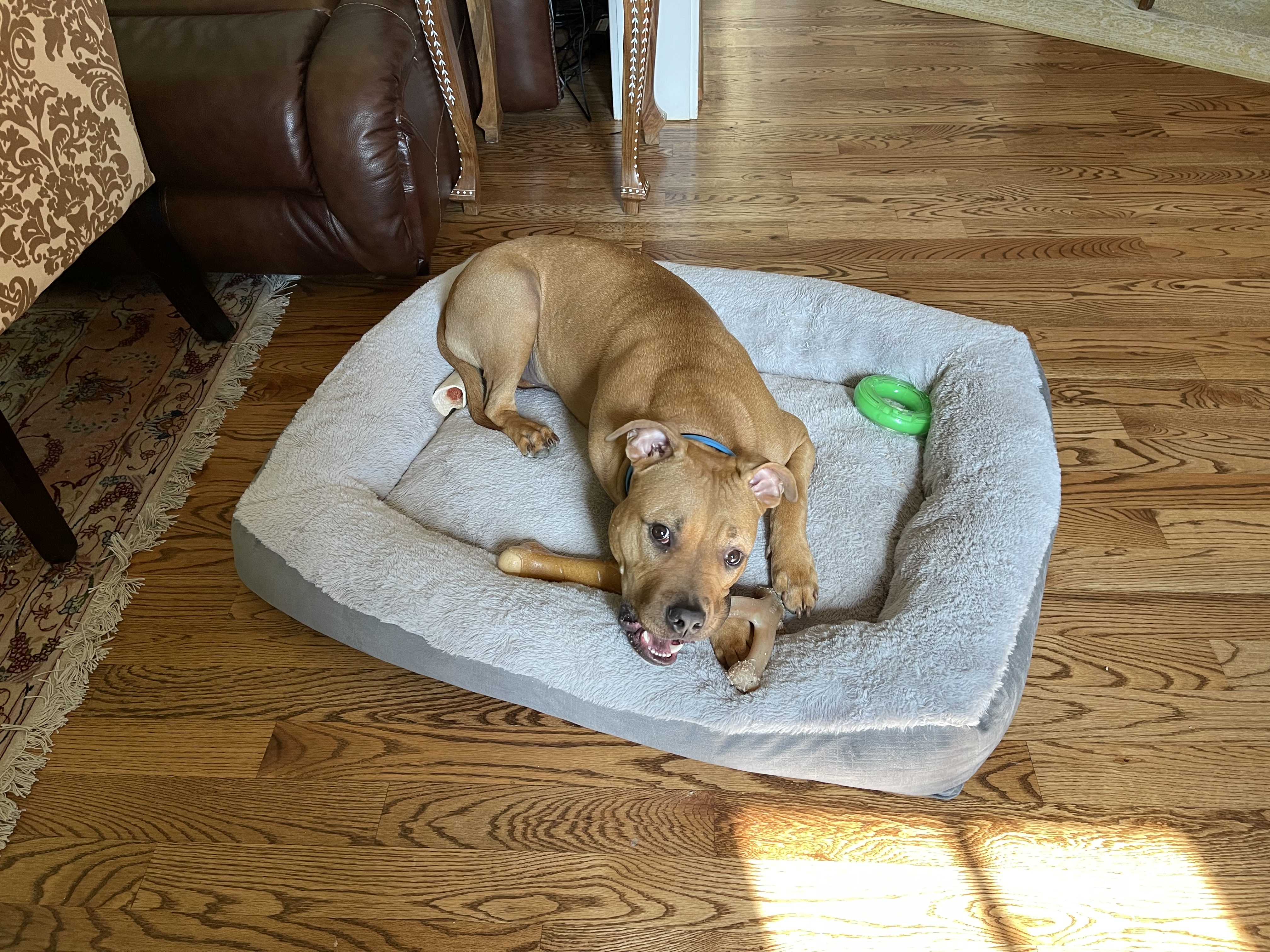 Ace is a great boy! Plays well with other dogs and loves to snuggle. He has completed the training at Nashville K9 and minds well. He is house and crate trained. Because he is a rambunctious puppy, smaller kids would probably not be a good fit.