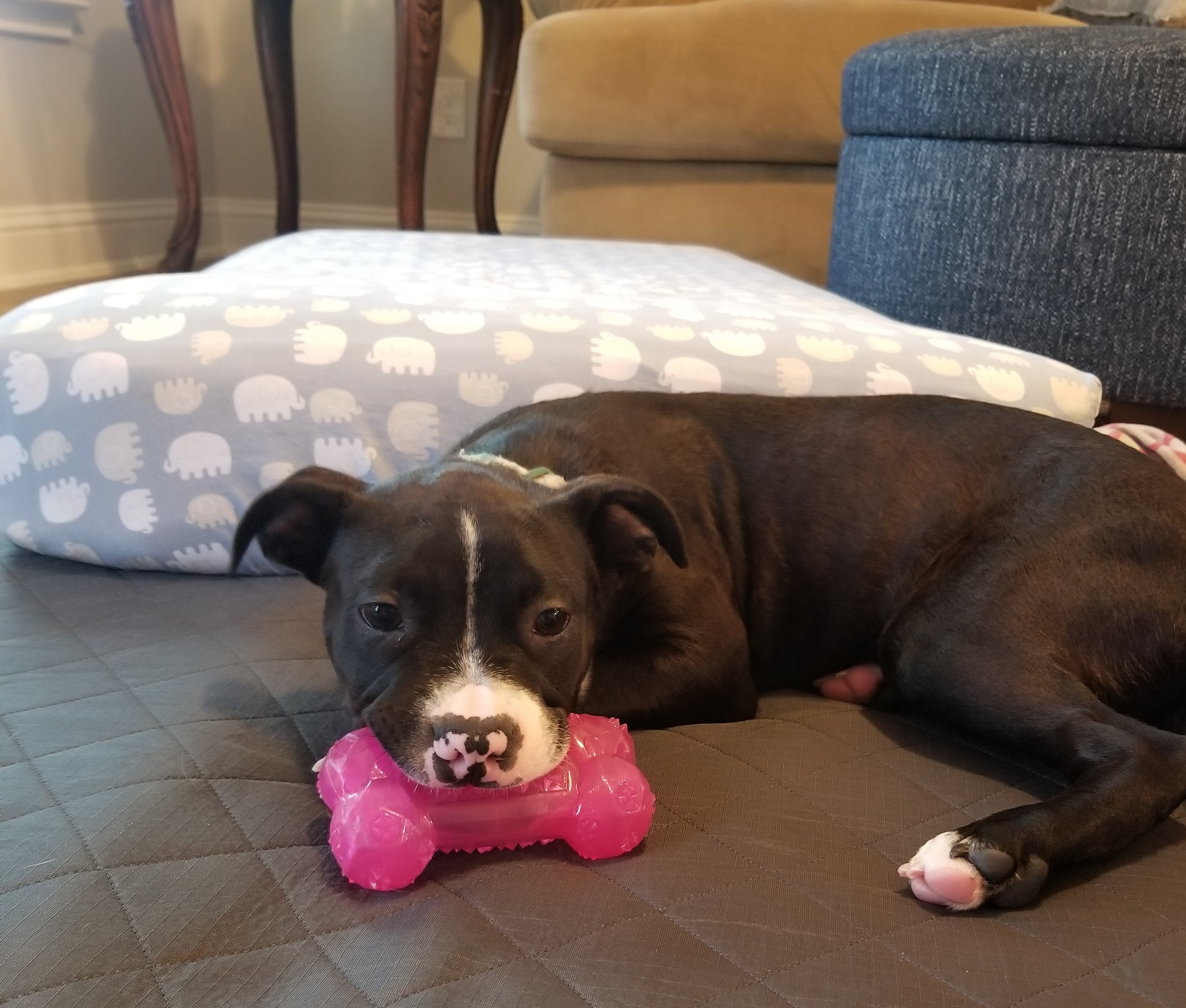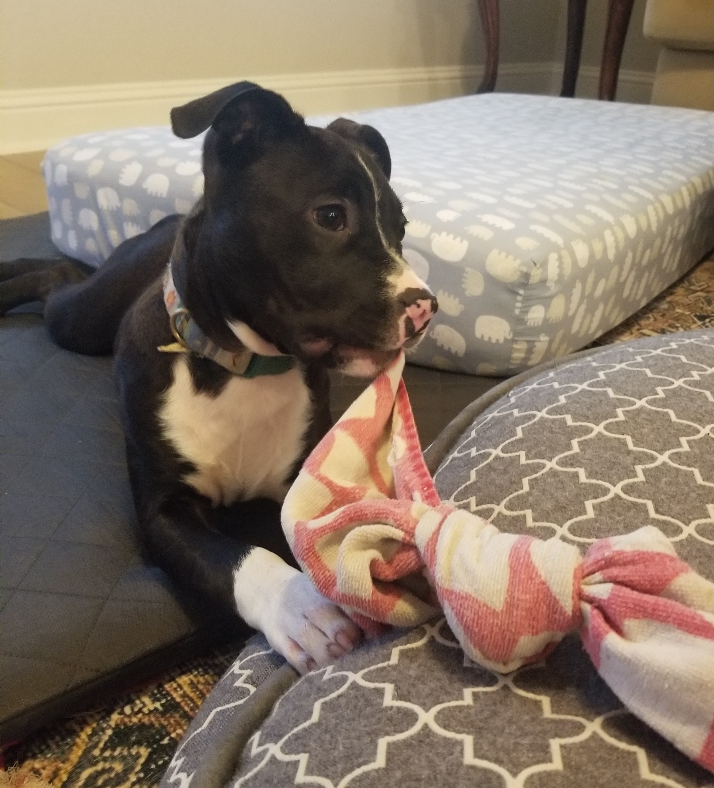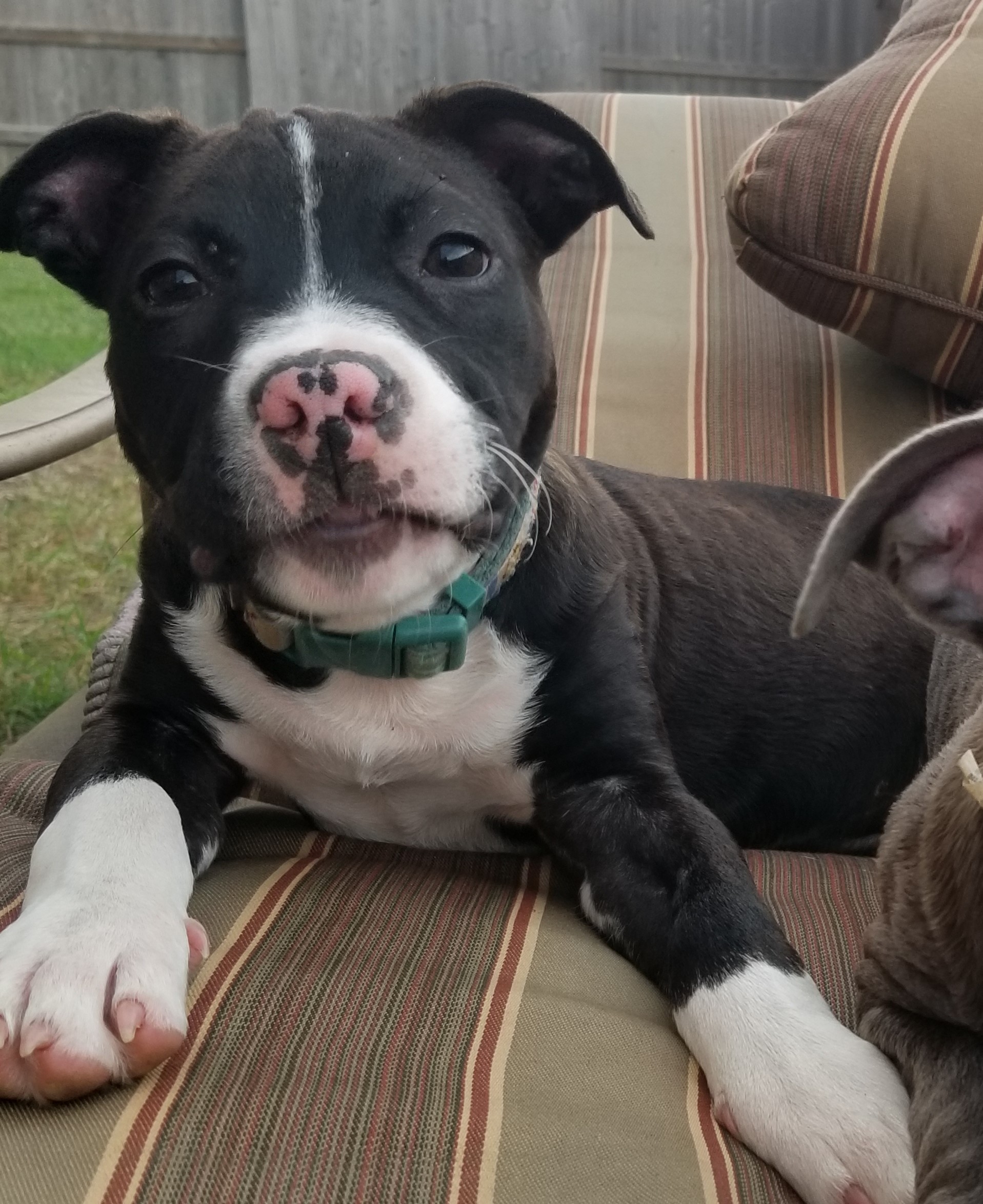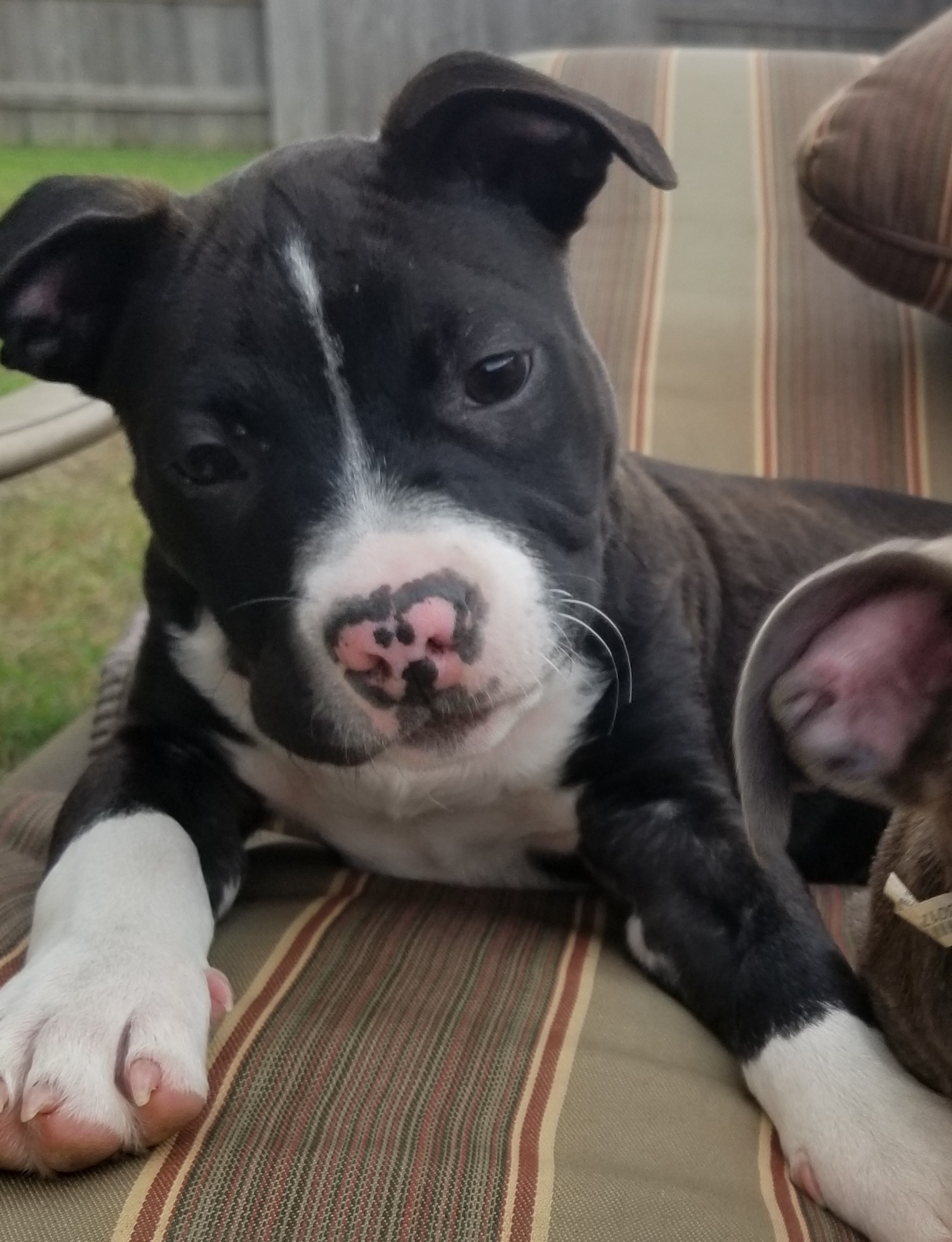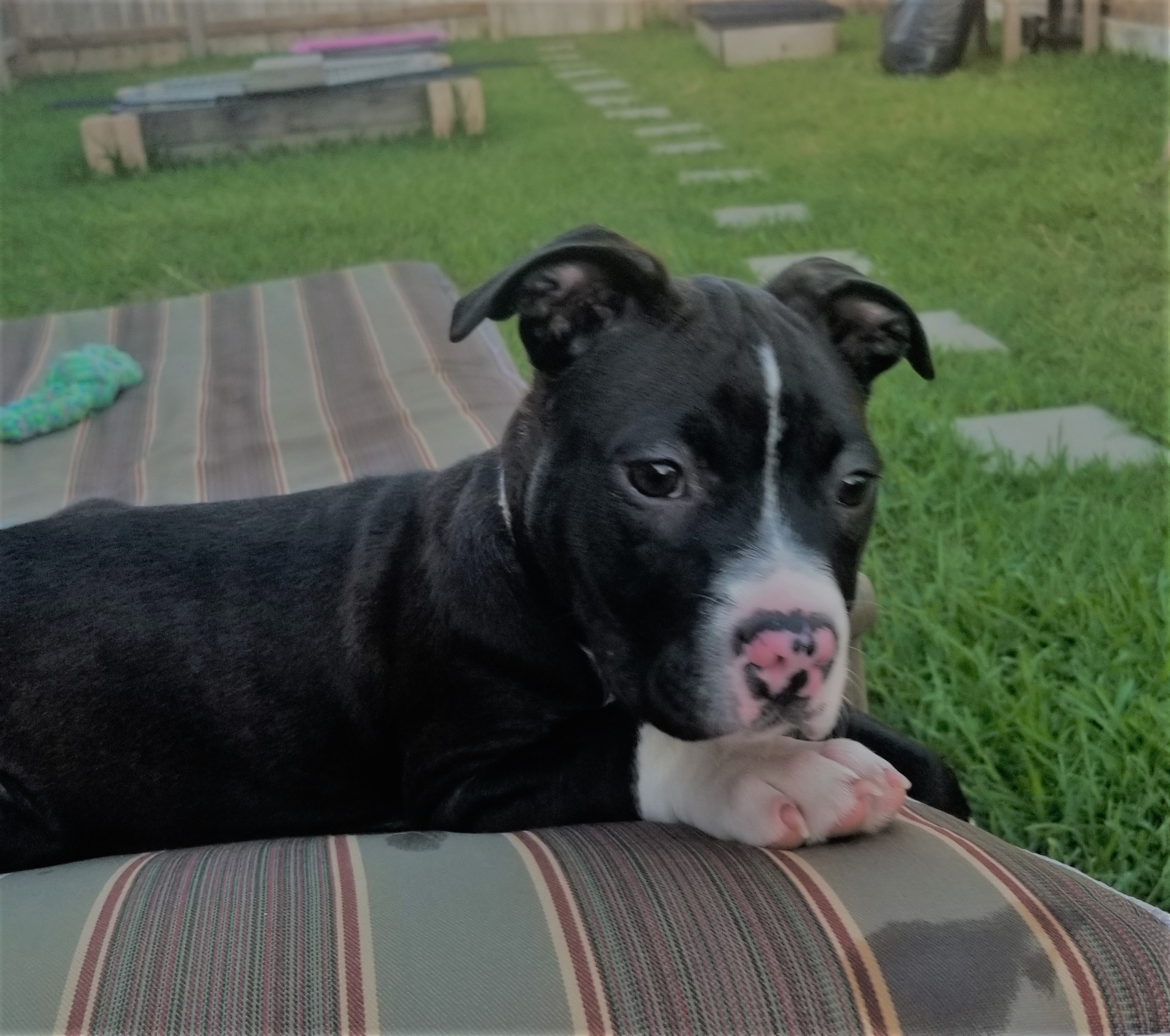 Hello! My name is Pup Tart. I love, love, love to play and Im always on the go, go go! My foster Mom calls me wiggle butt because I get so excited that I wiggle my whole behind. I love to play with my fur sister and new big fur brother and anyone else thats wants to stop by and say hi! While Im on my walks in the neighborhood, everyone is my new best friend that I just havent met yet. I love to stop and say hello. I am good with kids of all ages, dogs, and I am interested in cats (they are kinda weird looking to me though). I like to explore new suroundings as long as I have someone close in case that load motorcyle drives past again! So scary! It takes me a little bit to warm up to new places (like the dog park) but once I am comfortable then its full speed ahead. My sister is the opposite, she is pretty fearless. My foster Mom is excited because I am getting good at walking on a leash. Since I am still a young pup I am learning the ropes with potty training but I know that the leash means walk for potty! I also sleep in my crate just fine. Everyone that meets me says I have a great disposition (whatever that means). I also am told that I have brindle coloring but it doesn't show up well in photos. Either way, I think I look FANTASTIC!! :) When I take a break from playing, I like to curl up in someone's lap and give cuddles, and snuggles. Did I mention that I love to play? Want to meet for a play date? ========================================================= Please contact app@aarfhouston.org for more information about this dog. You can apply online by clicking on Application . Puppies that are under 4 months old cannot be adopted outside of our Veterinary Service area. Please call for specific locations. Children under 8 years old often are not a good match for our puppies and dogs. In order to protect both, your child and our rescued dogs/puppies from harm, we seldom if ever adopt to families with young children. Once your application is approved, we will schedule a meet and greet at one of our adoption events. Thank you for considering a rescue! The adoption fee includes vaccinations, Bordetella, de-worming, rabies, spay/neuter and microchip. There is a an additional $12.99 fee for Home Again for a lifetime registration of the microchip. Puppies cannot be adopted outside of the Houston area until they are spay/neutered after they are 4 months old. It is against the law in the State of Texas for a rescue not to be sterilized so we have to make sure it gets completed and that we have record of it. NOTE: In our bios, we provide information based on our volunteer's experience with a particular dog; such as temperament, training, and ability to get along with others. AARF is a 501(c)3 Non Profit, all breed, no kill organization. Our group is always in need of donations in order to continue to give the needed medical care to our rescues. Adoption fees do not begin to cover all of the medical costs. Any donation , no matter how small is a big help and is greatly appreciated. Please help us to continue to help them. Thank you.