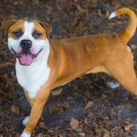 Meet Rugby! Rugby has a fabulous smile and is a friendly, happy guy. He likes chasing after toys, but is not a 'fetcher.' He's moderately active and quiet. A real looker. Come meet Rugby today!