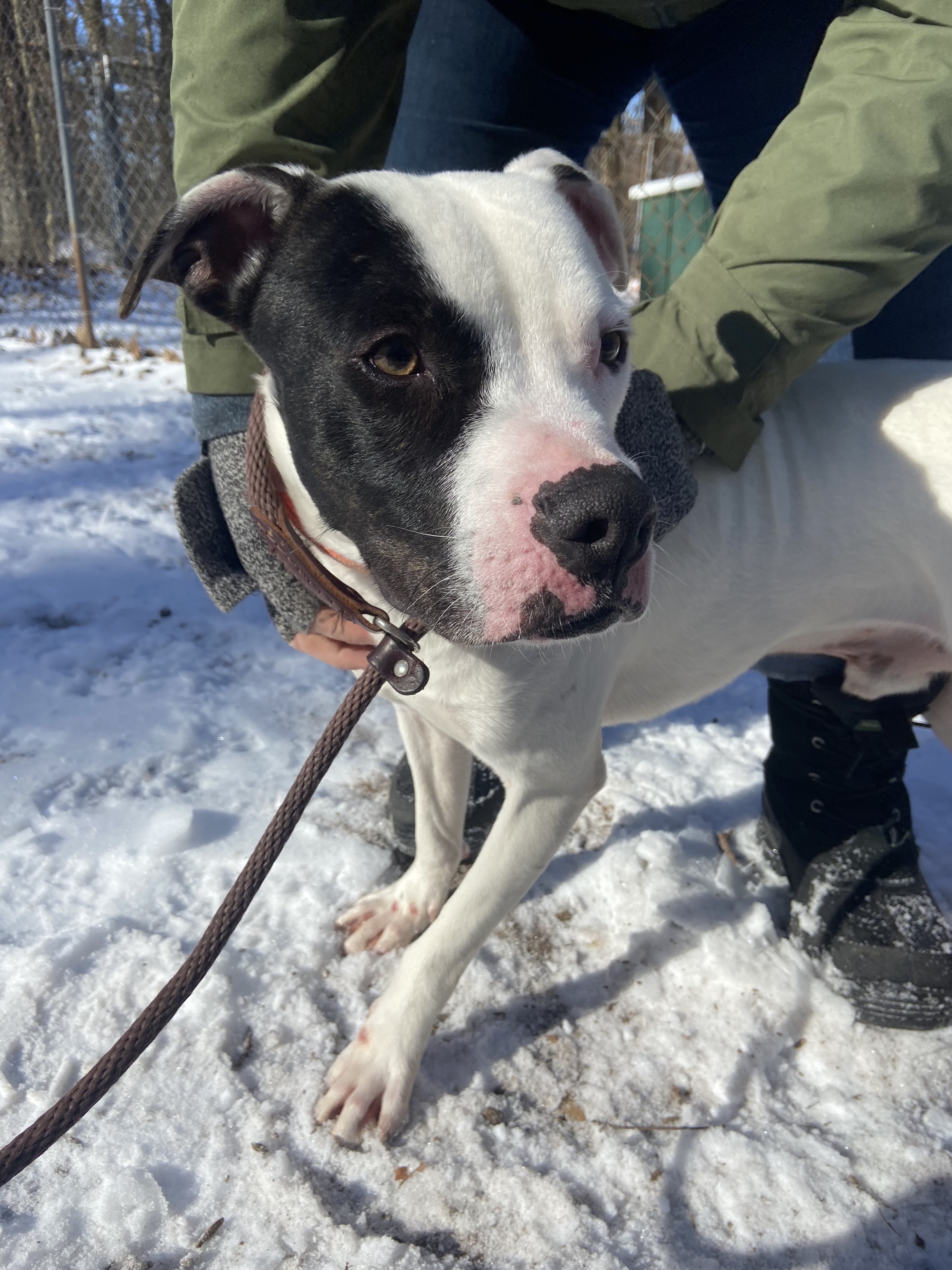 Goose is a 1.5 year old, 50lb sweet bully mix who walks well on leash. We have learned that cats are a definite no for this guy! Goose is a smart boy and would require some training and a firm handler - he does know the sit command, already! But he is not a fit for a first time dog owning home or one with young children. Goose needs structure and continued training to become the goodest boy we know he can be! Goose has lots of energy, so an active family with a lot of space would be best to keep him happy. Although Goose likes other dogs he can get out of control with playing and become way too over stimulated, so he'd need to be an only dog home. Check out his video to see just how sweet he is!!! Won't you open your heart to this loving guy? Apply to adopt at EHRDOGS.ORG!