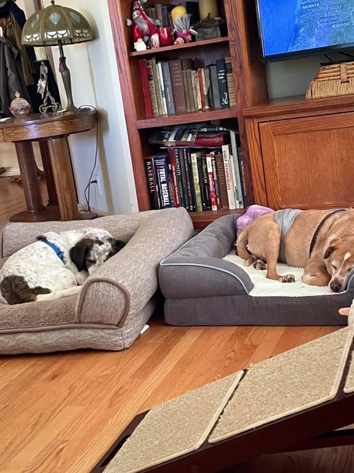 Nazzy and Spots - bonded pair of senior brothers. Need a home with a yard. Please meet Nazzy and Spots. Their owners sold their home and left this father and son behind! These sweet boys are 15 and 13 and still play!! They are adorable, happy, and have plenty of love to give. They are easy-going and easy to care for. Their personalities are wonderful and gentle. Both boys are in good health and very calm and sweet in the home. They like snoozing, puttering around the yard and getting lots of scratches. They enjoy a bit of bantering with each other, which is very sweet to see. They get along very well with other dogs but cannot live with cats. Nazzy has an old injury to his right front leg. It gives him a limp so he doesn't do well for long walks but does just fine with it. A daily med, he is good to go. Nazzy and spots have now been vaccinated and chipped. Their combined adoption fee is $200. We cover the medical to prepare the pet for adoption and the adopt donations go directly to cover those costs and range from $295-$495. Thank you for stepping up to save a life! To expedite to meet with this dog, please go to our site at www.savinggreatanimals.org and fill out an application. We look at the first applications to arrive, so we hope to hear from you soon!