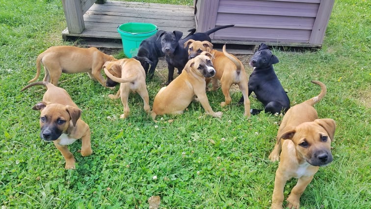 Please contact Lisa and Dave (ldconner22@gmail.com) for more information about this pet.TO PURSUE ADOPTION, YOU MUST REGISTER ON www.safeatlast.net & THEN COMPLETE THE SAFE AT LAST ONLINE ADOPTION APPLICATION. Meet the Trinity 11 Litter – boys Toby, Tucker, Toro, Tips, Taps and Taite, and girls Tina, Tassi, Timber, Sara”Toga”, and Mus”Tang” Sally!Taps was one of the smaller pups upon rescue, needing a bit more TLC, but he's now caught right up with the rest of the group. He is a fun happy pup! These pups & their momma (Sally) were dumped/abandoned in the woods in NC and left to die. Fortunately, a good Samaritan saw them and took them in to care for them and ultimately get them to rescue. Momma Sally was quite weak… and despite their and our best efforts with getting her medical attention, she became septic and did not survive. Momma Sally gave everything she had to her puppies, and, in her memory, we are giving our all to finding her beautiful babies wonderful, loving forever homes.These pups were born on ~ 5/10/21. Our best guess (no guarantee) is that they are Southern Cur/Pittie/Boxer mixes. (See included adult photo of their mother, Sally.) Right now (7/4/21), the pups range in size from 5 to 9 lbs. We expect, but again cannot guarantee, that they will be medium-sized adult dogs (40-60lbs). Despite their rough start to life, these babies are remarkably healthy and social. All have been started on their medical – they have been bathed, dewormed and given their first “puppy shot” (parvo/distemper). As to temperament/behavior, they are all happy, outgoing pups who love to play and be loved. They are doing fabulously in foster care, reveling in new experiences every day – running, playing, exploring, and even swimming!! They are very affectionate pups who love people attention. They also get along well with one another, the adult dogs in their foster families, and, in one foster home, cats and chickens as well. In short, these babies are extremely nicely tempered pups, each of whom will make a great addition to a loving, responsible home. Of course, as is the case with all puppies, they will need continued basic training to lead them to become good adult canine citizens. If you have the time, willingness and ability to commit to one of these babies for life, please apply with us.**Serious inquiries, please fill out the Safe at Last adoption application (as described below) - After you have submitted your application, a follow-up email is suggested to swiffer109@yahoo.com** TO PURSUE ADOPTION, PLEASE REGISTER ON www.safeatlast.net. After you receive your password, please COMPLETE THE SAFE AT LAST ONLINE ADOPTION APPLICATION. Once we have your application, IF WE FEEL YOU ARE A POTENTIALLY GOOD MATCH, we will contact you by e-mail to schedule the phone interview. So, please check your spam. Our review process is straightforward but involves the phone interview, reference checks and a home assessment. AN ADOPTION FEE OF $425 (AND A REFUNDABLE $35 SPAY/NEUTER DEPOSIT, required by NYS law) ALSO APPLY. YOU CANNOT MEET THE PUPS UNTIL YOU HAVE BEEN APPROVED TO ADOPT. WE CANNOT CONSIDER YOU UNTIL YOU HAVE SUBMITTED THE FULLY FILLED OUT SAFE AT LAST ONLINE ADOPTION APPLICATION. Delay in submitting your application will put you behind other potentially suitable applicants.**Unfortunately, at this time, we are unable to adopt to Massachusetts residents due to the state's dog quarantine mandates** The pups are being fostered in Cobleskill, NY. Approved adopters are required to go to the foster home to complete the adoption. NYS Rescue Registry No. RR 087.