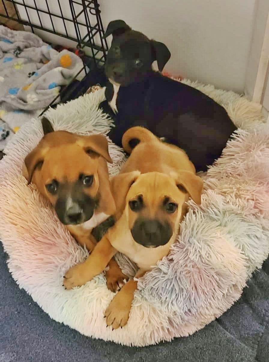 Please contact Lisa and Dave (ldconner22@gmail.com) for more information about this pet.TO PURSUE ADOPTION, YOU MUST REGISTER ON www.safeatlast.net & THEN COMPLETE THE SAFE AT LAST ONLINE ADOPTION APPLICATION. Meet the Trinity 11 Litter – boys Toby, Tucker, Toro, Tips, Taps and Taite, and girls Tina, Tassi, Timber, Sara”Toga”, and Mus”Tang” Sally!Taite was one of the smaller pups upon rescue, needing a bit more TLC, but he's now caught right up with the rest of the group. He's easy going, and tends to watch the other pups first when trying new experiences. He will snuggle quietly in your lap until he sees something going on he wants to be a part of! These pups & their momma (Sally) were dumped/abandoned in the woods in NC and left to die. Fortunately, a good Samaritan saw them and took them in to care for them and ultimately get them to rescue. Momma Sally was quite weak… and despite their and our best efforts with getting her medical attention, she became septic and did not survive. Momma Sally gave everything she had to her puppies, and, in her memory, we are giving our all to finding her beautiful babies wonderful, loving forever homes.These pups were born on ~ 5/10/21. Our best guess (no guarantee) is that they are Southern Cur/Pittie/Boxer mixes. (See included adult photo of their mother, Sally.) Right now (7/4/21), the pups range in size from 5 to 9 lbs. We expect, but again cannot guarantee, that they will be medium-sized adult dogs (40-60lbs). Despite their rough start to life, these babies are remarkably healthy and social. All have been started on their medical – they have been bathed, dewormed and given their first “puppy shot” (parvo/distemper). As to temperament/behavior, they are all happy, outgoing pups who love to play and be loved. They are doing fabulously in foster care, reveling in new experiences every day – running, playing, exploring, and even swimming!! They are very affectionate pups who love people attention. They also get along well with one another, the adult dogs in their foster families, and, in one foster home, cats and chickens as well. In short, these babies are extremely nicely tempered pups, each of whom will make a great addition to a loving, responsible home. Of course, as is the case with all puppies, they will need continued basic training to lead them to become good adult canine citizens. If you have the time, willingness and ability to commit to one of these babies for life, please apply with us.**Serious inquiries, please fill out the Safe at Last adoption application (as described below) - After you have submitted your application, a follow-up email is suggested to swiffer109@yahoo.com** TO PURSUE ADOPTION, PLEASE REGISTER ON www.safeatlast.net. After you receive your password, please COMPLETE THE SAFE AT LAST ONLINE ADOPTION APPLICATION. Once we have your application, IF WE FEEL YOU ARE A POTENTIALLY GOOD MATCH, we will contact you by e-mail to schedule the phone interview. So, please check your spam. Our review process is straightforward but involves the phone interview, reference checks and a home assessment. AN ADOPTION FEE OF $425 (AND A REFUNDABLE $35 SPAY/NEUTER DEPOSIT, required by NYS law) ALSO APPLY. YOU CANNOT MEET THE PUPS UNTIL YOU HAVE BEEN APPROVED TO ADOPT. WE CANNOT CONSIDER YOU UNTIL YOU HAVE SUBMITTED THE FULLY FILLED OUT SAFE AT LAST ONLINE ADOPTION APPLICATION. Delay in submitting your application will put you behind other potentially suitable applicants.**Unfortunately, at this time, we are unable to adopt to Massachusetts residents due to the state's dog quarantine mandates** The pups are being fostered in Cobleskill, NY. Approved adopters are required to go to the foster home to complete the adoption. NYS Rescue Registry No. RR 087.