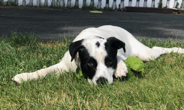 Onion Ring was adopted as a young puppy but is now being returned to us because the family didn't realize just how much work is involved with raising a puppy. The last few photoss were from his previous post. He is now about 5 months old and a total love, great with kids and other dogs. Onion is a very sweet puppy, so smart, and he is great with the kids. He loves to go for walks at the park although he is fearful of paths near the road or when the lawn care folks are working noisily nearby. As you can see in his video, Onion loves his toys and will even bring them to you! Onion ring is a great family pet who was even learning how to behave around the elderly cat in his former home. He does well around other dogs although he does get very excited but then he's only a puppy! We hope he will soon find a new home where he will receive the training and attention a puppy needs to grow into a wonderful adult dog! If you'd like Onion to become part of your family, please apply to adopt ONION RING LONESTAR at www.EHRdogs.org!