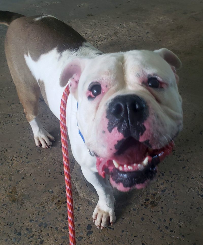 Wilbert was pulled into our rescue from a local inner city shelter. This handsome short and stocky Bulldog mix is around 3 years old and weighs 75 pounds. Wilbert is very sweet with everyone he meets and gets along well with other dogs. Wilbert walks well on leash and is crate trained. He is a very smart boy - he comes when called and knows the sit command. Wilbert is very active and doesn't know his own size and strength. He's a bit of a bull in a china shop, so he needs some work on his doggy manners. If you're interested in adopting WILBERT NEWARK, please complete an adoption application at www.ehrdogs.org.
