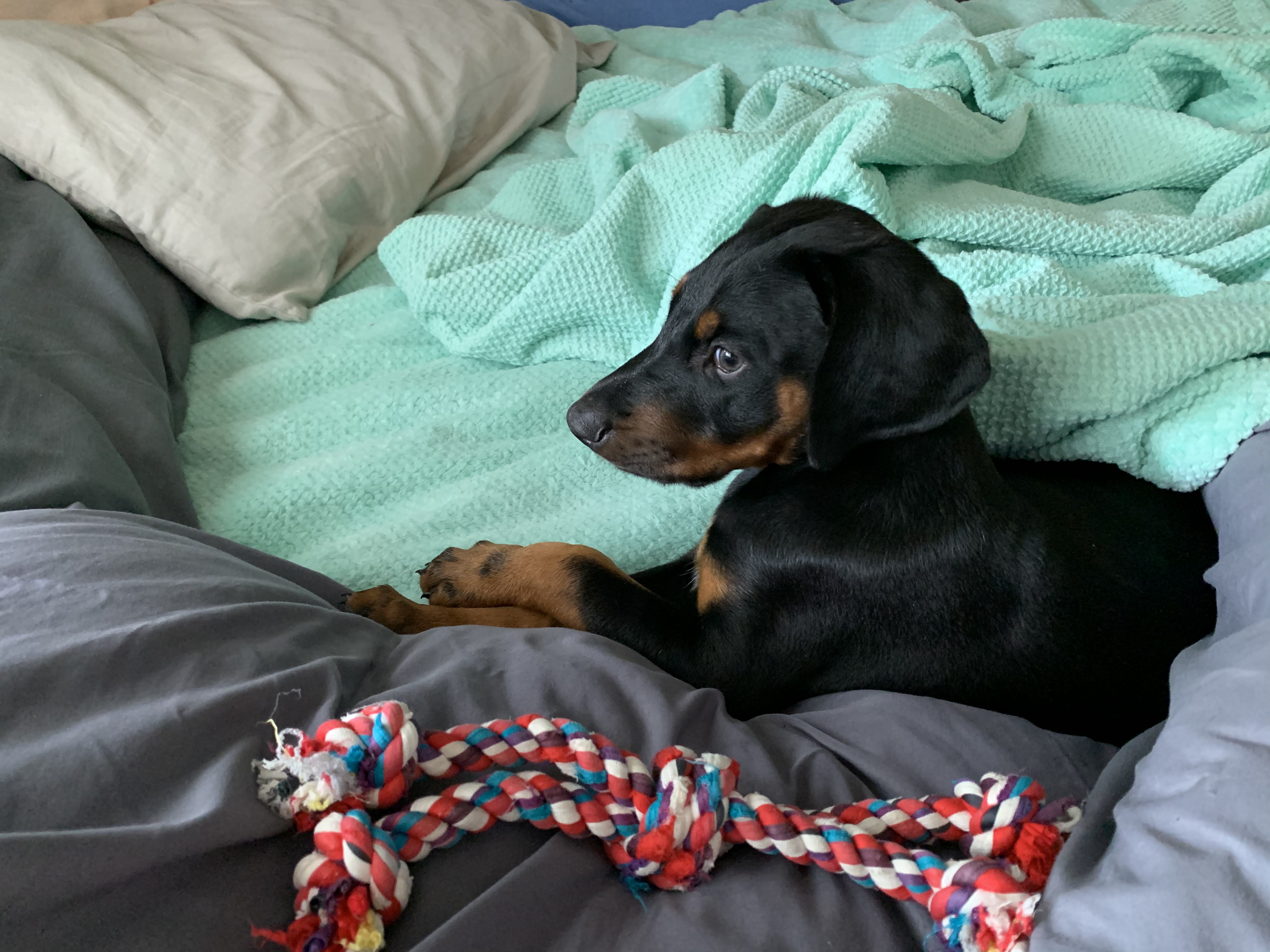 Maximilian and his 3 other siblings are around 5-6 weeks old. Their momma was hit by a car and they were no longer wanted. Puppies are a lot of work! Max is such a handsome, sweet baby and the largest one in the litter. He does have some mobility issues which we will have looked at by a vet this next week to get a better idea of what is going on. Max is able to get from point A to point B just fine, but sometimes he falls down. Mentally this puppy is sound, so its a physical thing. We will know more about what his issues are soon.
