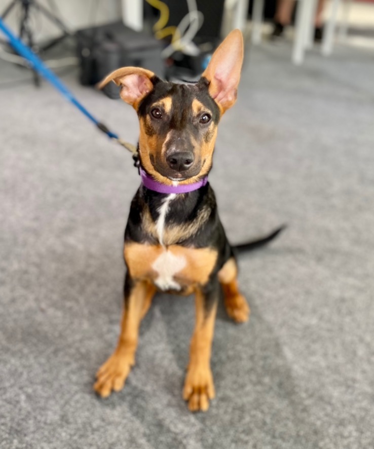 Maui is an adorable GSD/Rotti/Doberman mix who is very intelligent and a bit of an escape artist. He's looking for his forever family who can keep him tired and entertained for the rest of his puppy life. Maui is a DREAM puppy! He learns very fast, does well in his crate, is learning to accept a leash, is playful, inquisitive, and full of love. He even seems to know when I have to work or need to be on a call and curls up at my feet under my desk until my call is over… 💕)