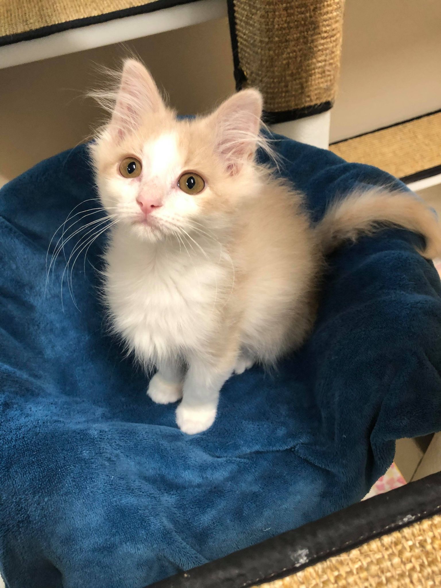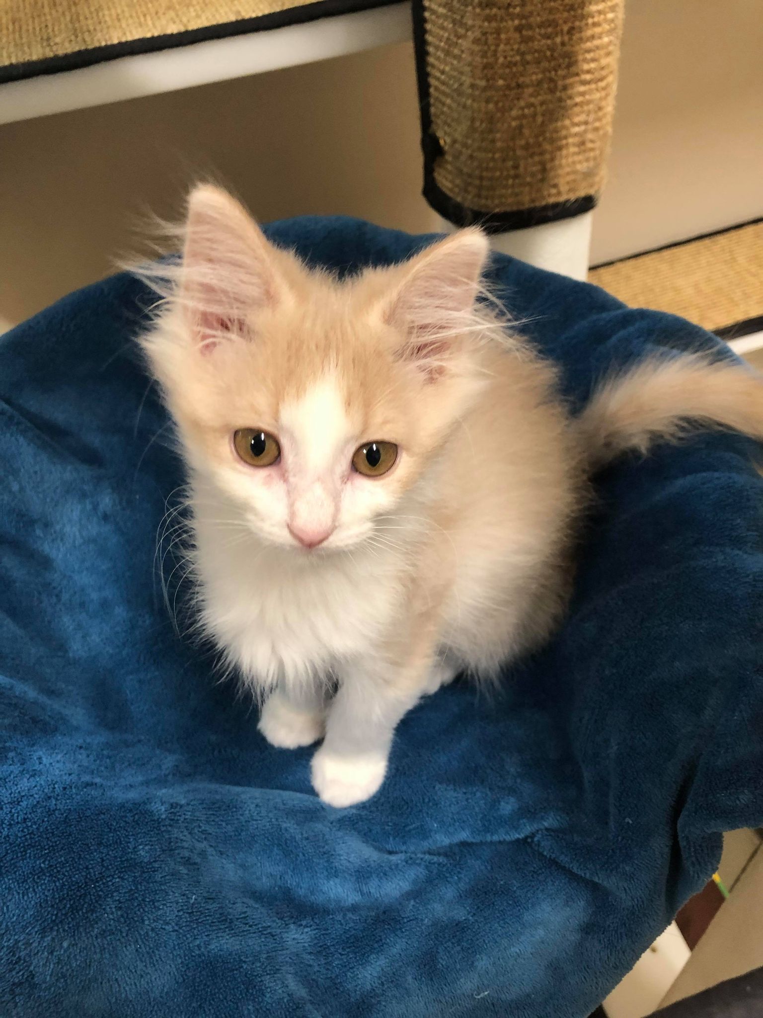 Meet Cloud! Cloud is a sweet and special little guy. We believe he is about 11 weeks old. He gets along great with other kittens/cats and would make a very loving pet. The $100 adoption fee ( payable by cash or check only ) includes: spay/neuter; vaccinations; microchip; and feline leukemia testing. Please fill out an application at the following link: https://www.headinhomerescue.org/adoptionapplication.html
