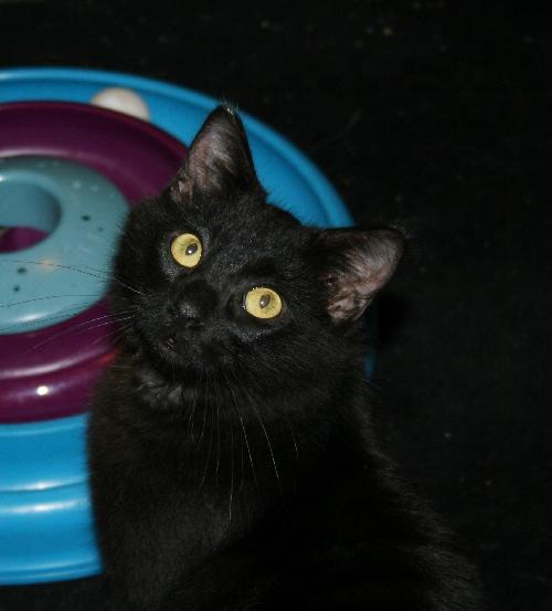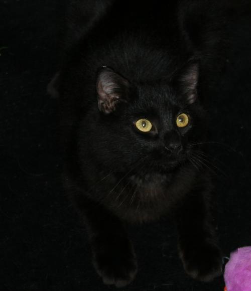 Loads of fun and cute, cute, cutePrecious boy with loving heart seeks a home of his own! Scamp lcouldn't be cuter. He's a little lover with a bunch of personality. His ears say it all. "What's going on" and the ears go back. "Love you" and the ears come up. He loves high places, jingly toys, and pets. Scamp is the cat raised by possums. His foster family found him as a tiny kitten, living behind their barn with a few possum adolescents. He was fending for himself and if you'd seen his scruffy fur, dirty face, and bad manners, you wouldn't recognize him. Now his fur is sleek, he has the physique of a romance novel cover cat, and the personality of a star. Scamp needs a home, maybe with some children, maybe not, to give him the love and cuddles and ear scritchies he deserves. He's already discovered that the eats never end once you've been rescued! To meet this doll face baby, go to his webpage at www.happycatadoptions.org and click the adoption link under his photo to fill out the easy online application. His foster family would be glad to arrange a meeting. Scamp's adoption fee of $125 is used to rescue more possum babies. Er...kitties.