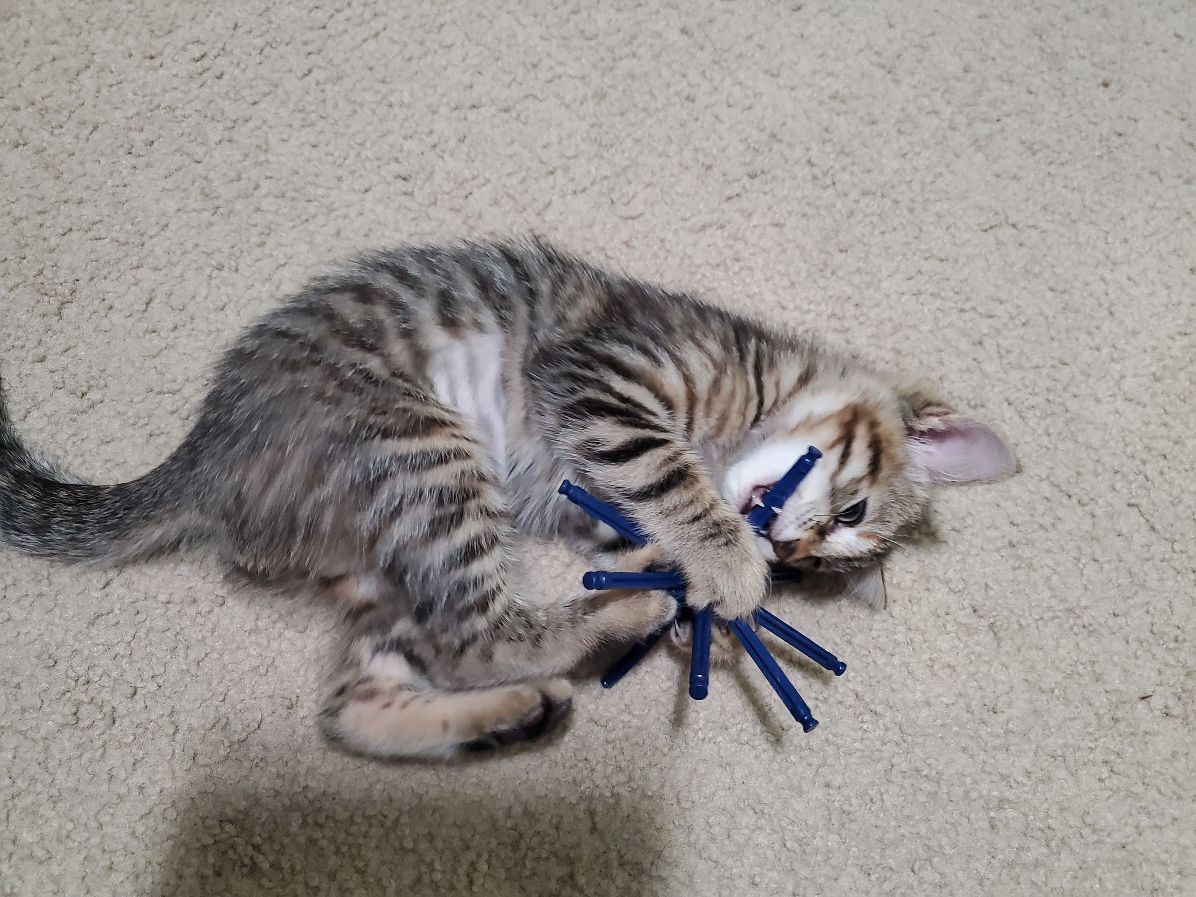 Basil is a petite 3 month old brown tabby kitten. She loves to be in the company of her foster family. She loves to play with her brothers and toys, but is mellow compared to the other foster kittens. She is great with dogs, cats, kids and chaos. She would do best with another kitten to play with. For more information about Basil, please contact Mari at mariward@comcast.net Thank you for considering a rescue kitten!! For more information on HALO you can email us at contacthalo@yahoo.com. To see more of our cats and dogs go to www.eccchalo.org Please bring your on carrier.