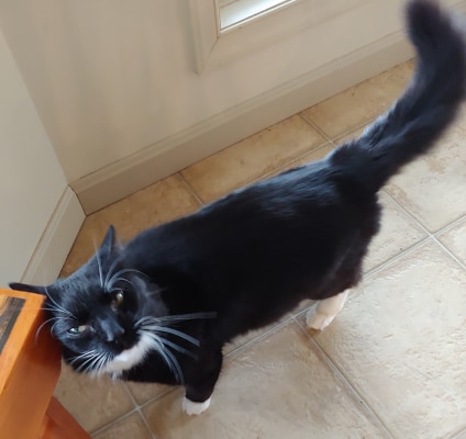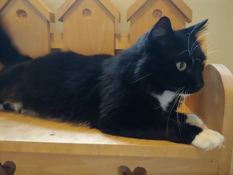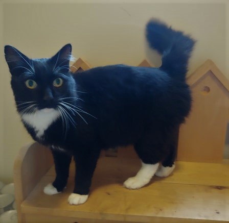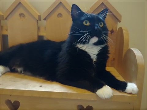 This is Sylvester a DMH tuxedo male cat. He is a Loving Care cat rescue kitty living in a foster home. For more info email butterfly22828@gmail.com Sylvester is a very big boy with longer hair and a fluffy tail, he came to us in hopes of finding an inside forever home, it’s getting cold out there and we think because he was neutered without an ear tip he was probably dumped. He is a friendly boy but didn’t really like being held down for his blood test, he didn’t hiss or try to bite but did get away from us a few times. He is now living with another kitty and seems to be doing well. The adoption fee is $125.00 which includes a negative Felv and FIV test, distemper shots, worm meds and flea treatment plus his neuter and a microchip. Thank you for looking. Loving care cat rescue is an organization that helps cats in need, they are a no-kill rescue that has foster homes throughout Central Pa helping unwanted cats and kittens find their new forever homes.If you are interested in adopting this kitty, please fill out the online application at http://02b1d4c.netsolhost.com/LCCR/adoptionapplication.php