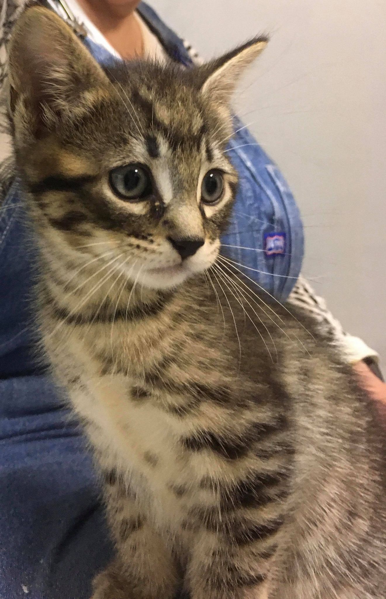 This litter of five are from Bowling Green.  As with most rural shelters lots of unwanted critters are turned in either by people that do not spay and neuter their pets, or by people that find them and want to get them to safety.  Luckily for these five Heartland had room to take them in.  The staff up there were socializing the kitties and I was very happy they came in friendly and playful.  Maybe a bit demanding if I am too slow opening their canned food treat, but all very good kitties.  After completing all the necessary treatments of parasites they were seen by the vet and altered, micro chipped, tested for FIV and FeLV (negative), tested for parasites (negative), and they have had their first booster shot.  Date of birth is estimated at March 30th of this year.  The two gray kitties are male and are Gianni and Gradin, the black kitty is female and is Gelilah, the dilute tortie is female and is Geneva, and finally the brown tabby is male and is Geordi.  All are ready for adoption and would love to join your family!  Kids should be just fine, other kitties should be just fine with proper introduction, but I have no idea if there was ever any exposure to doggies.  Gianni is Heartland #12701CL, Geneva is #12702CL, Gelilah is Heartland #12703CL, Geordi is Heartland #12704CL, and Gradin is Heartland #12705CL.