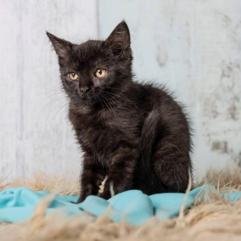 Hi, I'm Bender. My foster parents want you to know I'm nothing like my namesake Bender from Futurama. Although, at times I can be pretty rough with my brother Zoidberg. I'm a curious kitten full of energy and love to explore. Some of my favorite things to do are following my foster parents around like a shadow, playing with my brother's tail, and purring so loudly I wake myself up. If you want to be my best friend all you have to do is scratch my charcoal-colored chin and I'll fall asleep in your arms. I also love to sleep on mousepads, keyboards, and windowsills. My brother and I were found on the side of the road and have been through a lot together. So that's why I must be adopted with my favorite playmate Zoidberg. If you are interested in learning more about Bender and his best friend Zoidberg, please complete an adoption form. https://www.shelterluv.com/matchme/adopt/BKB-A-1642 Bender and Zoidberg are a pair adoption only. Their combined adoption fee is $400. Note: Bender is available for a foster-to-adopt arrangement. Bender can move to an approved adoptive home when he is 12+ weeks old but will remain the property of The Bitty Kitty Brigade until medical care has been completed including his neuter surgery.