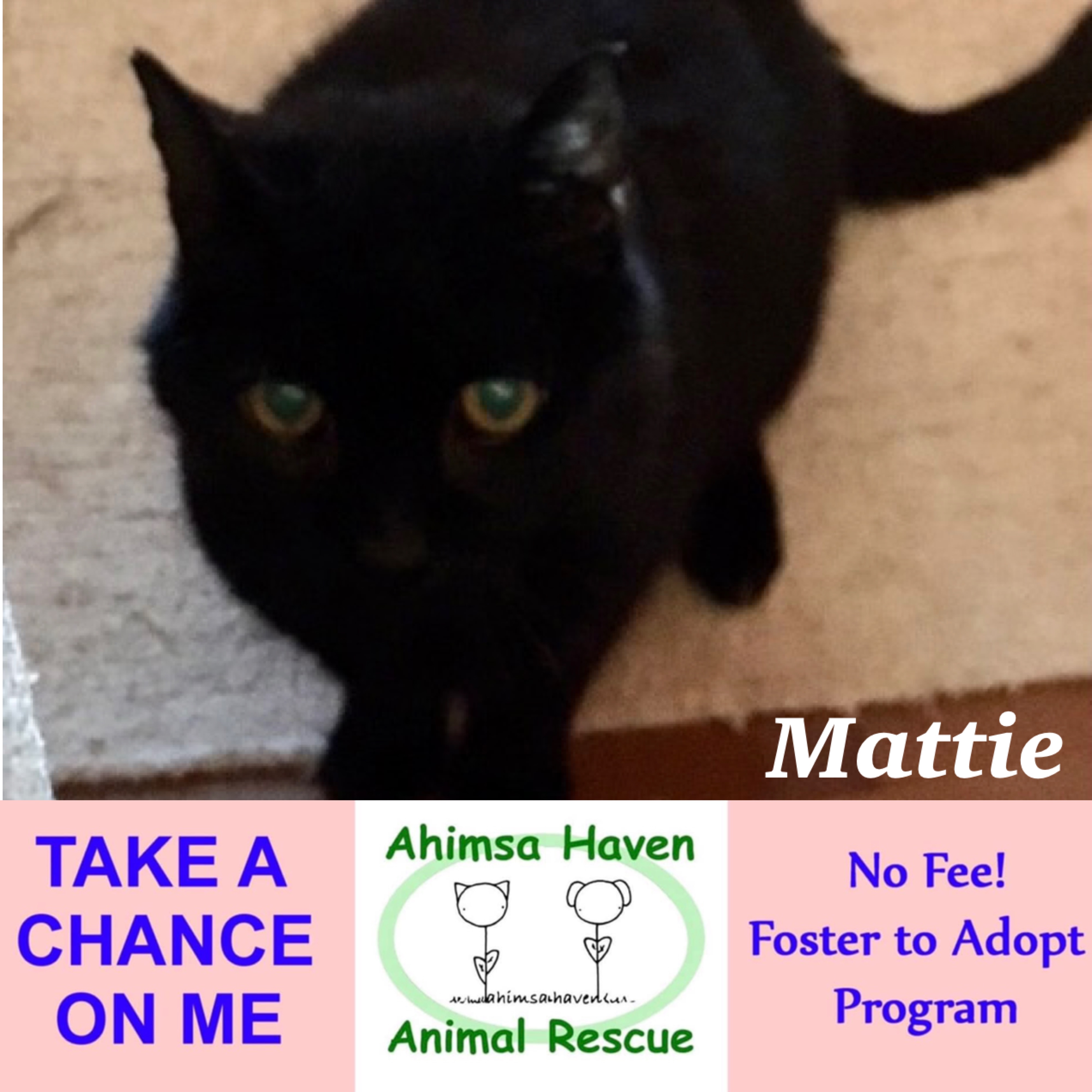 Meet Mattie! Mattie has survived it all! Broken back, beebee gun shot, and a blood clot - those are the things we know of. He came in as a stray-dragging his back leg; we thought he was hit by a car at first but after some testing we discovered he had a bloodclot. Now on heart meds, his back leg is all healed. He is ready for his forever home! Mattie is 11 years old and would like a quiet home with no dogs, other cats or small children. He is very very sweet and quick to purr once he gets to know you. A pretty low-key guy, he likes to eat and look out the window. Would be a great companion for someone looking for company and a low-maintenance cat! Mattie also has heart disease and would need daily medication. Mattie is also part of our Take A Chance On Me Program. This means We would waive his adoption fee for the right home for. You must have a reliable and consistent vet reference. Check out our website (ahimsahaven.org) for more details. If you are interested in adopting, please fill out an application online at ahimsahaven.org . Meet and greets are with an approved application by appointment only. As always, cats that are ready to be adopted are spayed/neutered, have age appropriate shots, are micro-chipped, dewormed/deflead, and FEL/FIV tested.