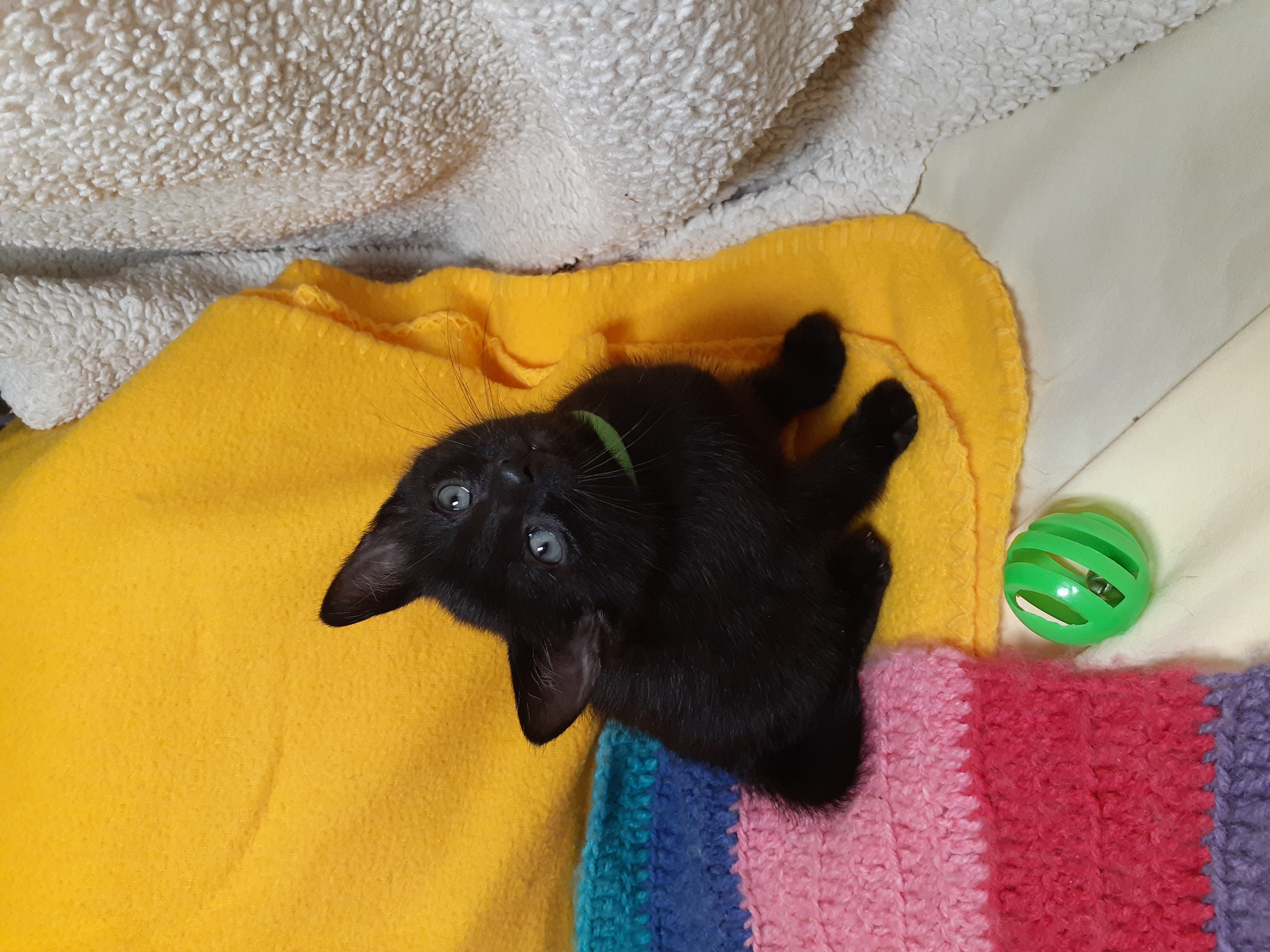 This little guy has enjoyed being with his siblings and his mom while growing big enough for adoption. One sibling has been adopted and another is not quite big enough for spay surgery but his sister, Lindy, and mom, Lilith, are ready along with Leif and awaiting adoption. Any combination of them together would be lovely, however, Leif has been socialized with other adult cats and another adolescent kitten. He is a typical active and playful kitten finding great joy in hide n' seek, chase, or wrestling with her siblings or her mom, Lilith, who is just an overgrown kitten herself. Like his siblings, Leif is either busy playing or piled in a kitten heap sleeping and has not shown interest in being a lap cat yet but once he gets past kittenhood, we imagine he will be since his mom is quite affectionate with people and often seeks out attention and to be held. Leif may do well with a cat-friendly, calm dog given the proper introduction but he does need another cat companion to romp and play with in his new home. We estimate Leif was born around April 20, 2021. Bio #3876MB-Lf. If you're interested in adopting this or another of our cats, please fill out our adoption questionnaire at http://icraeastbay.org/adopt/how-to/.