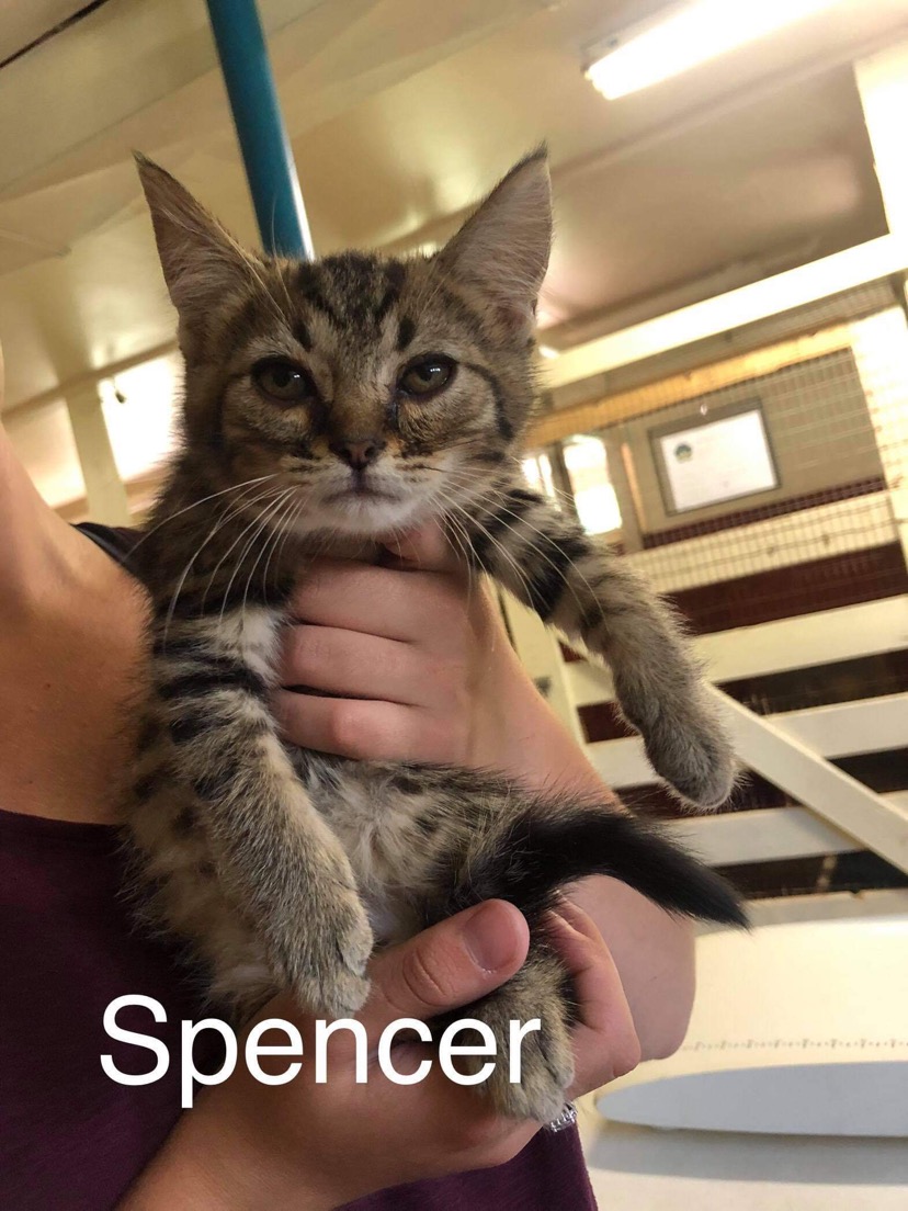 Spencer was surrendered on 6/8/2021 along with his 2 other siblings. He is a cute tabby kitten that is around 3 months old. He has been wormed and vaccinated. He is not neutered yet because he is not old enough. It will be the adopter's responsibility to get him neutered when he is old enough. Adoption fee is $15.00If interested in adopting a pet from our shelter, please click on one of the following links which will take you to our adoption application. The shelter staff is busy and not often able to answer phone calls so please email us at rchumane@zoominternet.net with any questions. Thank you for your interest! (If you send an email or application our promise is to respond within 24 hours but most of the time it's a much shorter wait. If you don't hear from us, please check your SPAM folder because I promise we have responded.) Dog Adoption Application If link doesn't work then copy and paste this into your browser https://form.jotform.com/61234520103135 Cat Adoption Application If link doesn't work then copy and paste this into your browser. https://form.jotform.com/61234314792150
