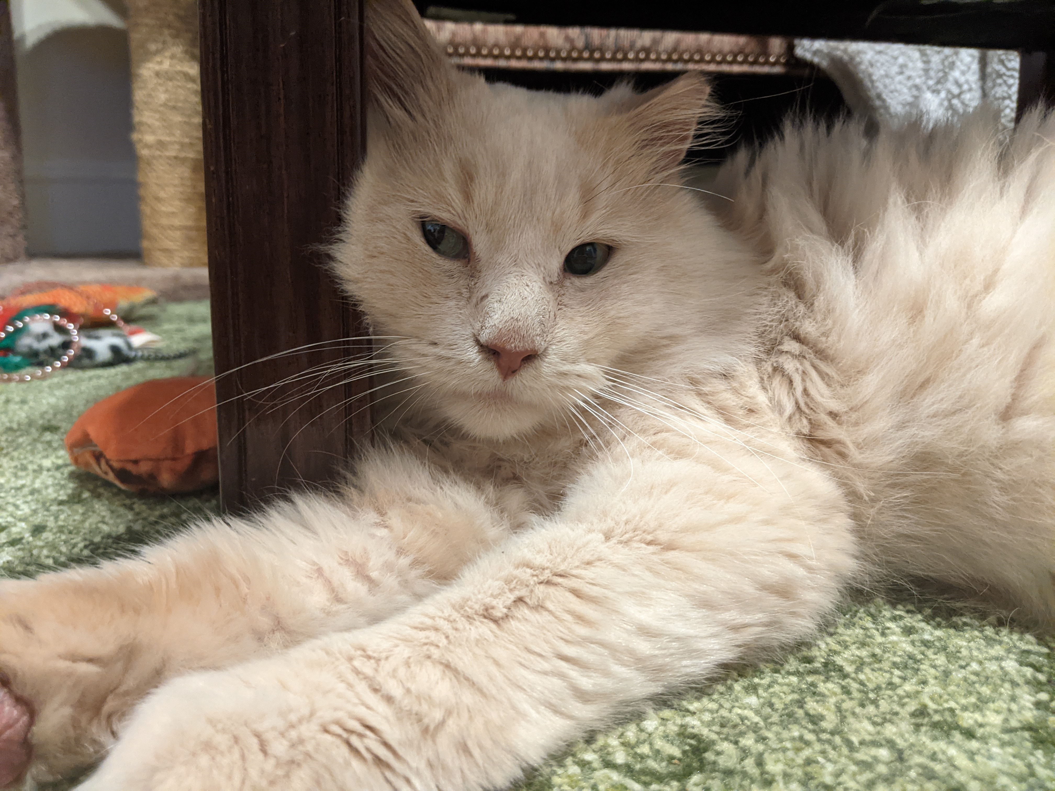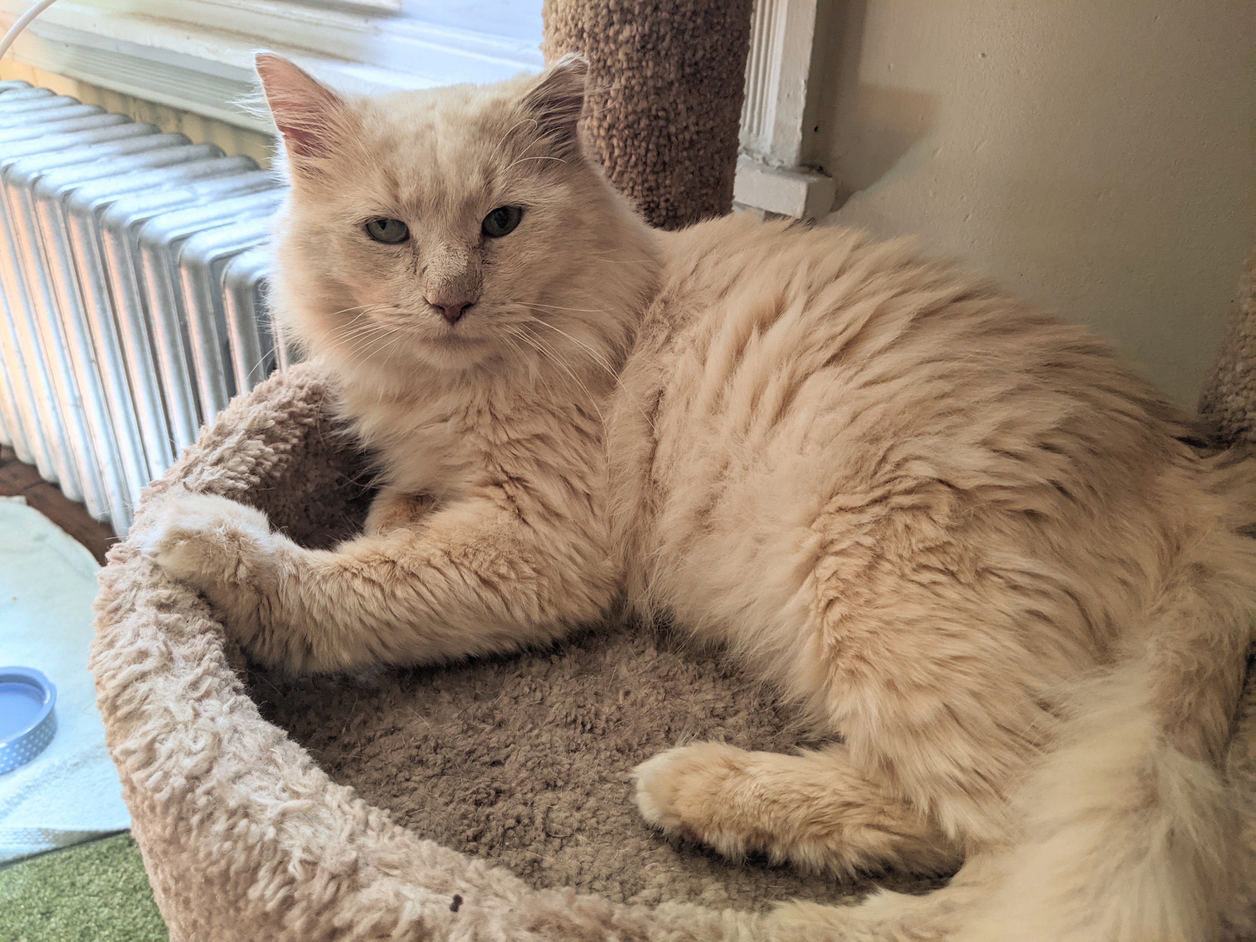 Floofy lion in search of forever home! Goofy, nice, and a little bit of spice are the ingredients which make up the renowned Emerson. A staff favorite, this handsome man is looking for a forever home that can provide him with endless napping spots, head scritches and play time. Emerson is an immensely sweet kitty who prefers being close to you, whether that be laying on your desk or taking a nap next to you on the couch. He loves all the normal things a kitty would, including pets, treats and wand toys. Outside of the occasional burst of energy, Emerson generally has a very calm demeanor. He has his fair share of goofy goober moments, making him an endearing and lovable cat. Emerson can be a little particular about where on his body he gets pets, and it can vary from hour to hour, for which reason he would do best in a home without young children or other pets. Despite his finicky nature with pets, he truly is an affectionate kitty and would love to find a forever home where he can be spoiled rotten. Besides being diagnosed as FIV+, Emerson will also need some dental work in the near-ish future at a full-service vet. He is also currently being treated for a condition known as "pillow foot" but has been really responding well to antibiotics. He's got a bit of a sensitive stomach so he's presently on Hills I/D to keep his stomach happier and healthier- and he eats it well! Watch silly Emerson here: https://fb.watch/5XhHhxJSFe/ Age: 6-10 years old How I came to PAWS: Found Stray Animal ID#: A49432 Location: Foster Care. Please email emmastenger11@gmail.com to learn more about this kitty! **FIV is specific to the feline species, and is not transmissible to dogs, humans, or any other animals. It is spread from cat to cat via mating or deep puncture bite wounds. Thankfully, all our cats are spayed or neutered so mating is no longer an option! Since FIV does not spread through casual contact like grooming, sneezing, and food/litter sharing, FIV+ cats can live with other cats that have tested negative as long as the cats get along without fighting._____________________________________ To adopt a cat, complete the application at phillypaws.org/catapp.To adopt a dog, complete the application at phillypaws.org/dogapp. Please reference this animal's ID NUMBER when inquiring. Learn more about PAWS' adoption process, locations, and more at: phillypaws.org/adopt/info. __________________________________________Adoption fees include age-appropriate vaccinations, spay/neuter, and microchip. Adoption fees are as follows, plus tax: $150 for large adult dogs (older than 1 year); $250 for small dogs (under 25 lbs) and all puppies (under 1 year); $60 for adult cats (over 6 months of age), and $100 for kittens (under 6 months of age). When you adopt a pair of kittens together, the total adoption fee is $150. PAWS, the Philadelphia Animal Welfare Society, is a 501(c)3 non-profit animal rescue organization dedicated to saving Philadelphia's homeless and at-risk animals. PAWS is the city's largest rescue partner and provider of low-cost, basic veterinary care. Through our adoption locations, special events, and network of foster homes, PAWS finds loving homes for thousands of animals every year. PAWS is working to make Philadelphia a no-kill city where every healthy and treatable pet is guaranteed a home. Please visit www.phillypaws.org for more information on adopting, fostering, volunteering, or donating.