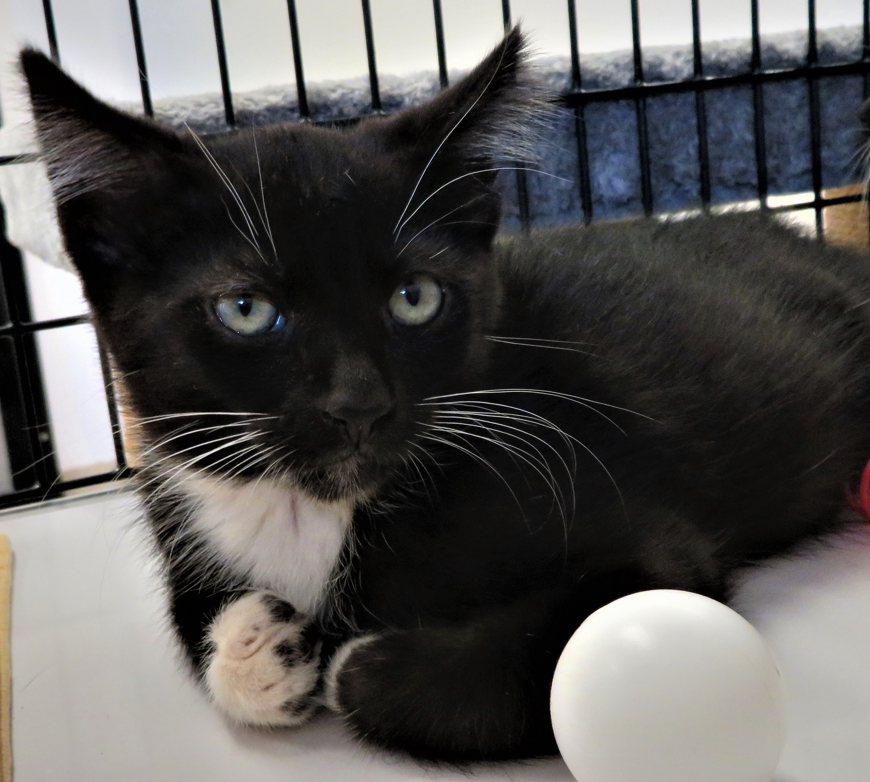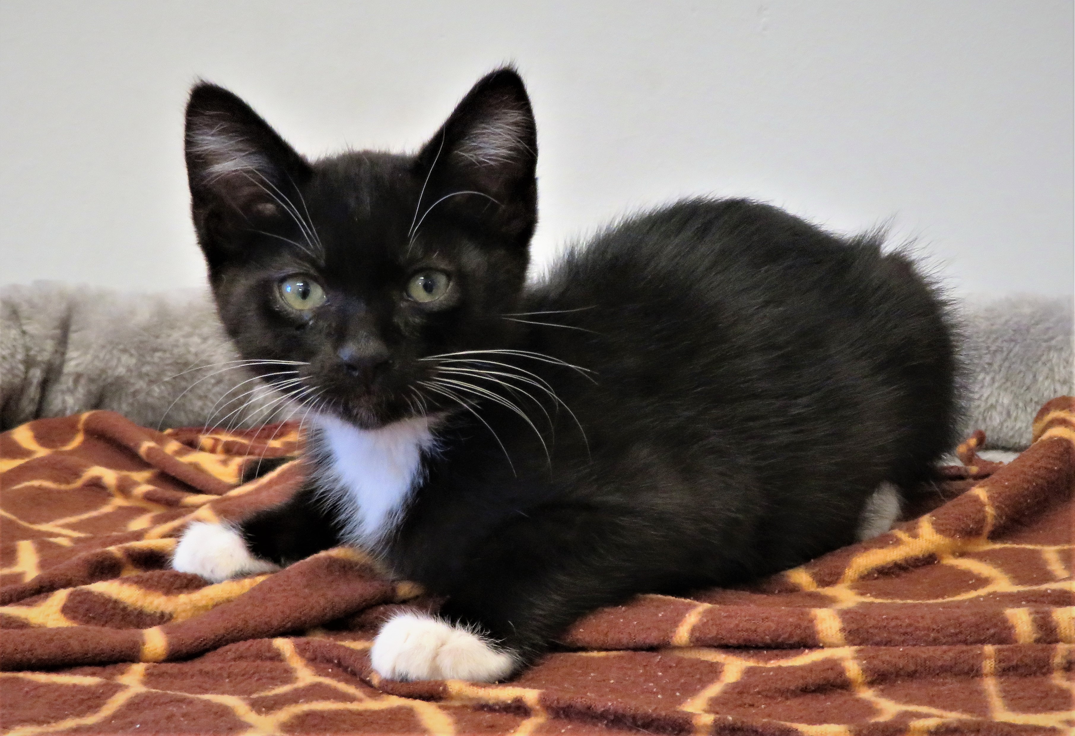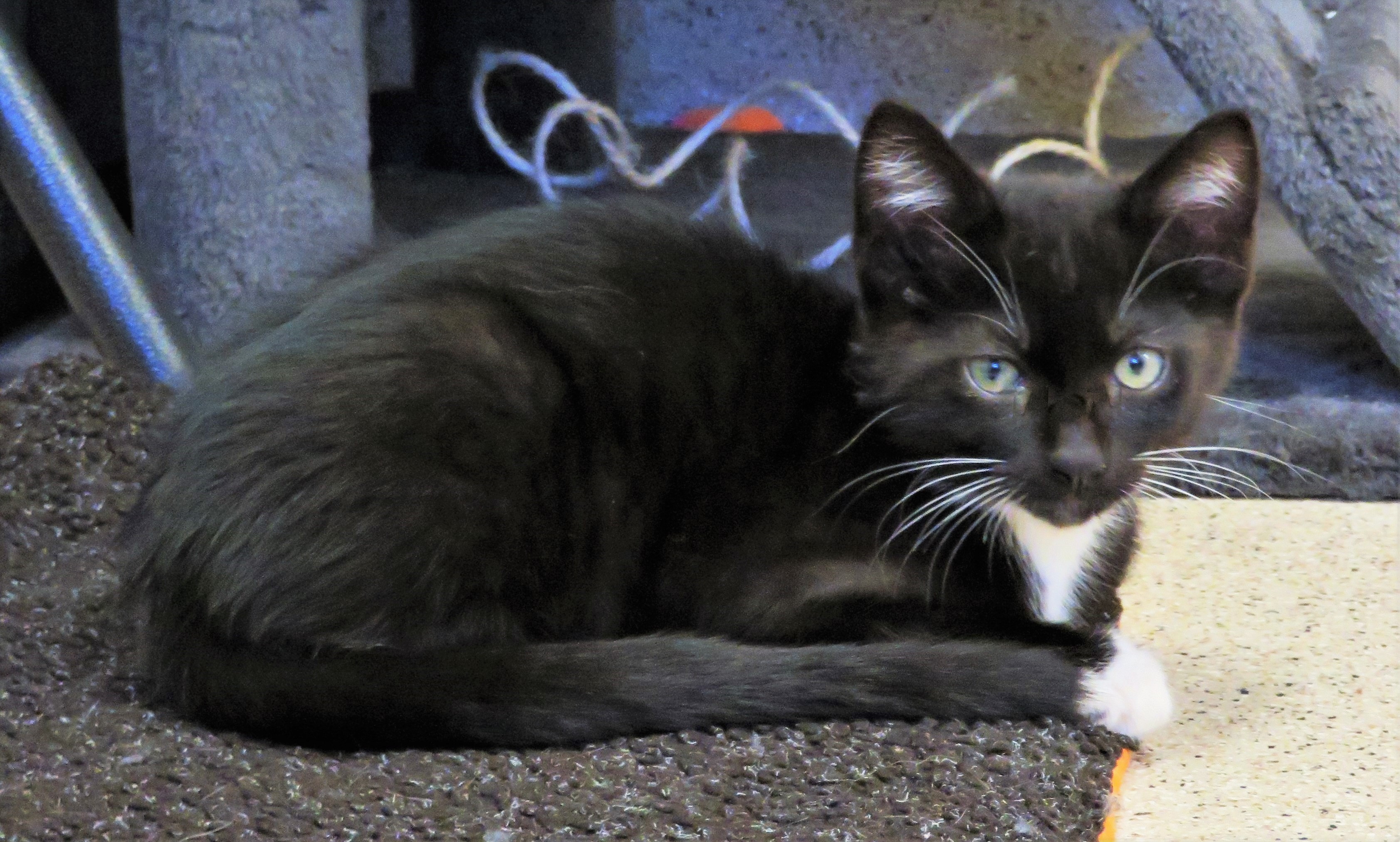 Hi, I’m Amadeus. I was rescued from the street with my brother and sister when we were seven weeks old. We were very scared and it took some time for us to relax and realize that humans are really nice and want the best for us. I am now a playful and friendly kitten and am even OK with being picked up and cuddled. I just love playing with the bee or mouse on the wire and when I catch it I don’t want to let it go. I am hoping to find my forever home real soon and would love to go home with my brother or sister or another kitten or cat.